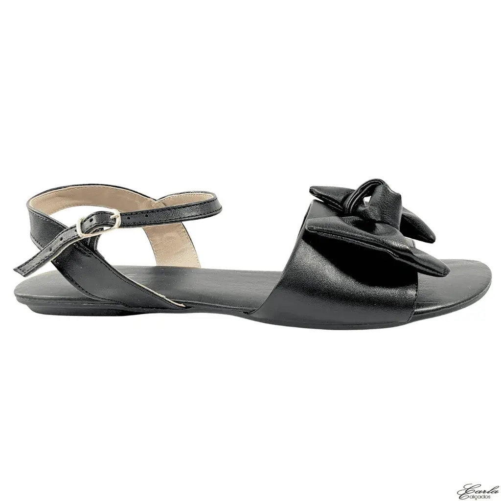 Rasteirinha Preta Laço Tamanho Especial 41 ao 44