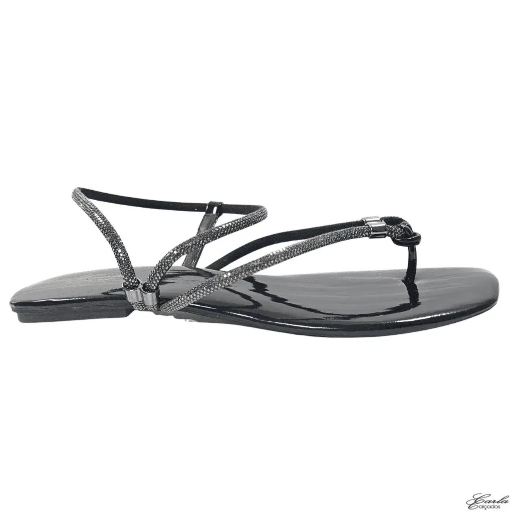 Rasteirinha Preta Verniz Strass Tamanho Especial 41 ao 44