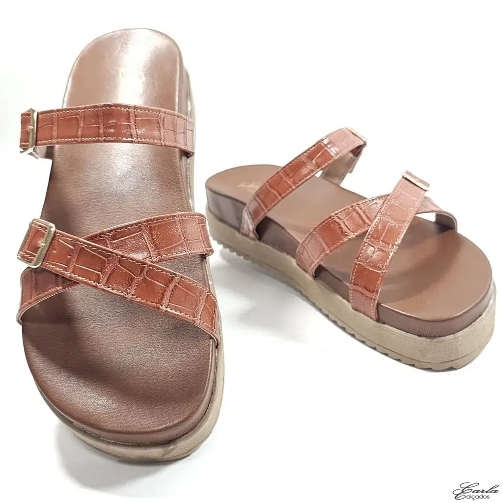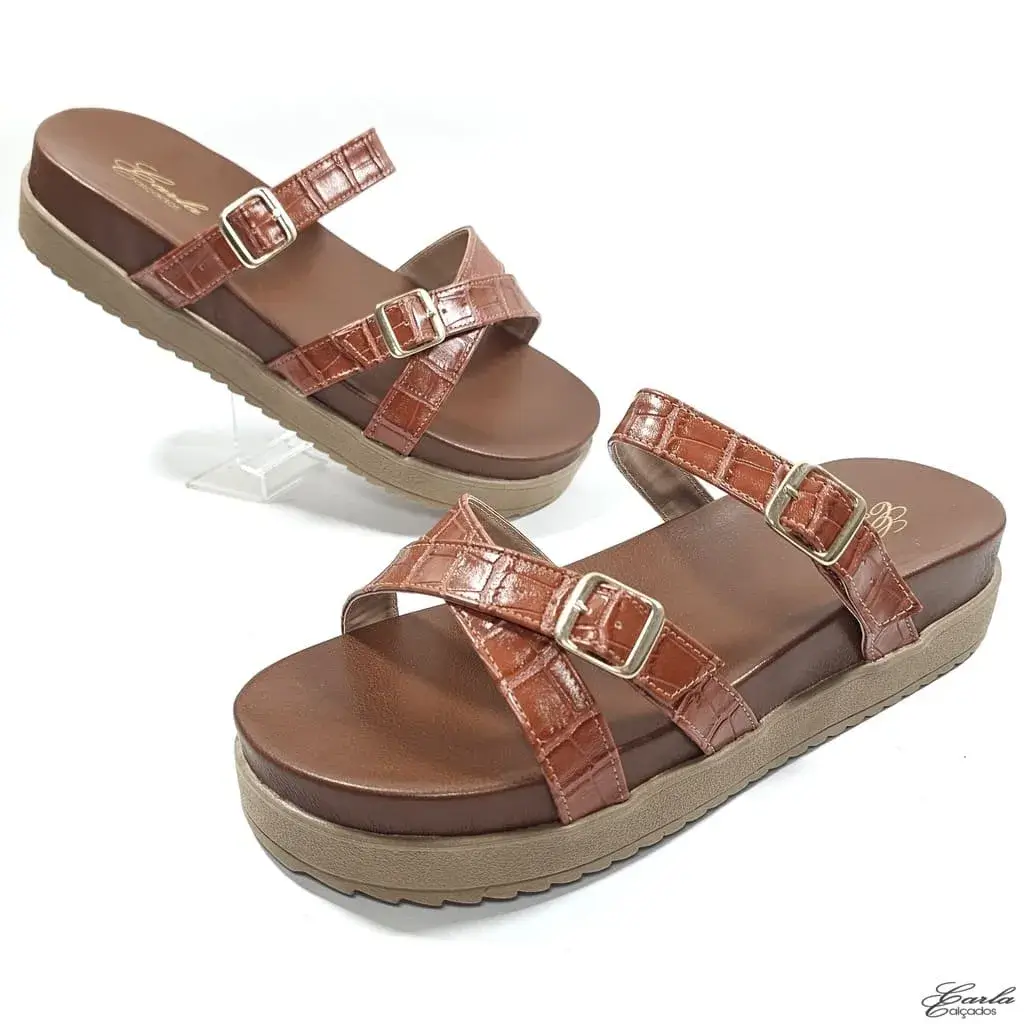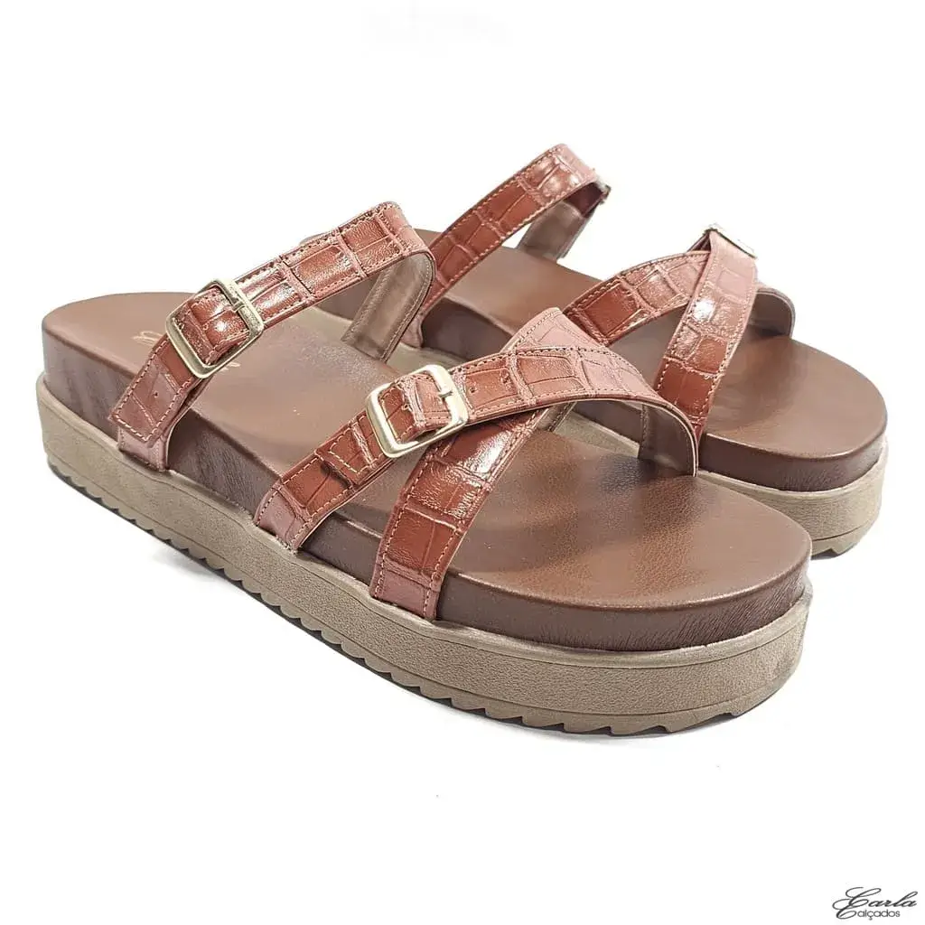 Ref: Plata Papet 019 – Papete Plataforma Croco Caramelo Tiras Cruzadas Tamanho Especial