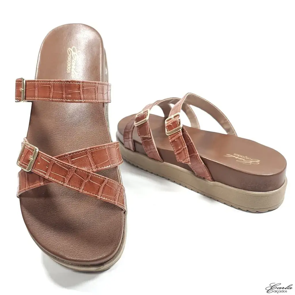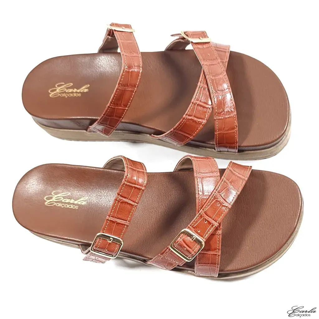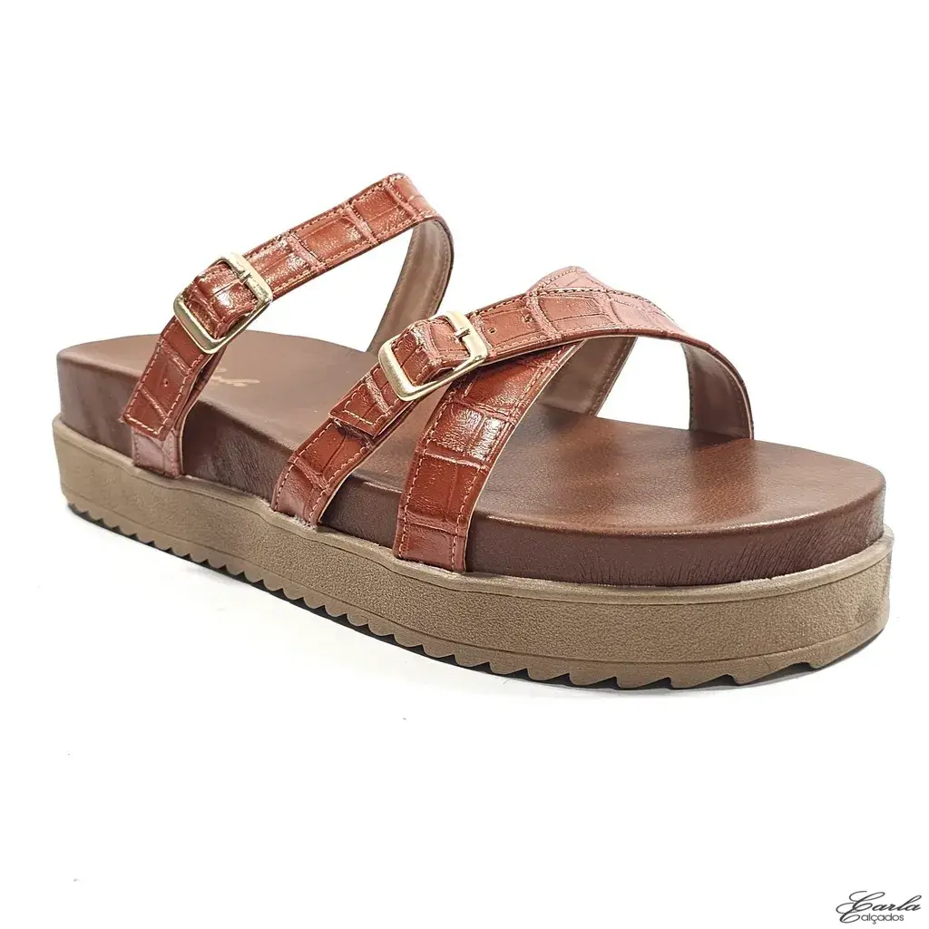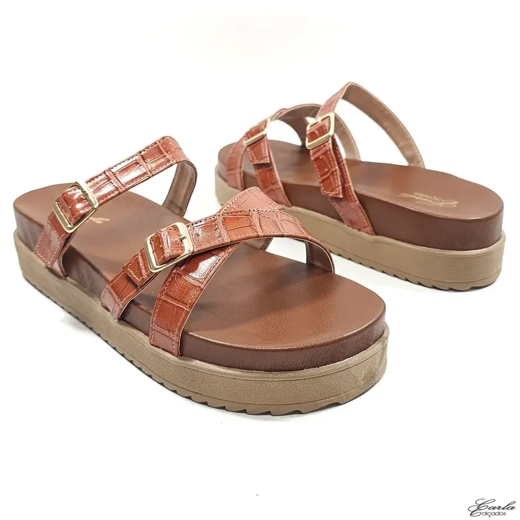 Ref: Plata Papet 019 – Papete Plataforma Croco Caramelo Tiras Cruzadas Tamanho Especial