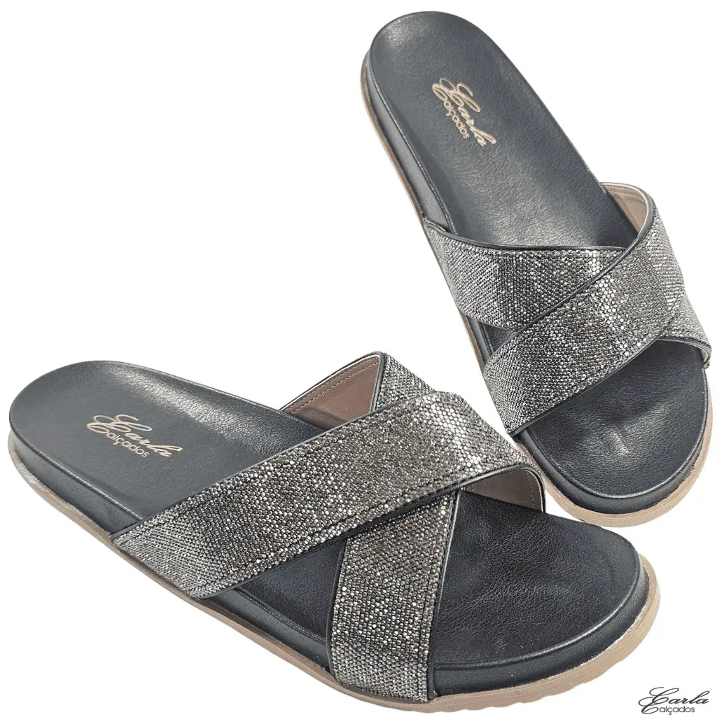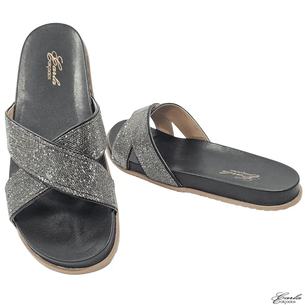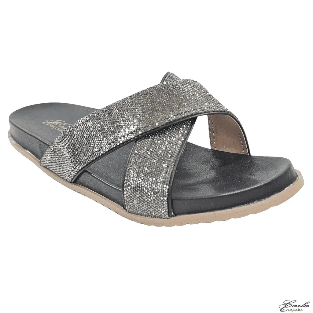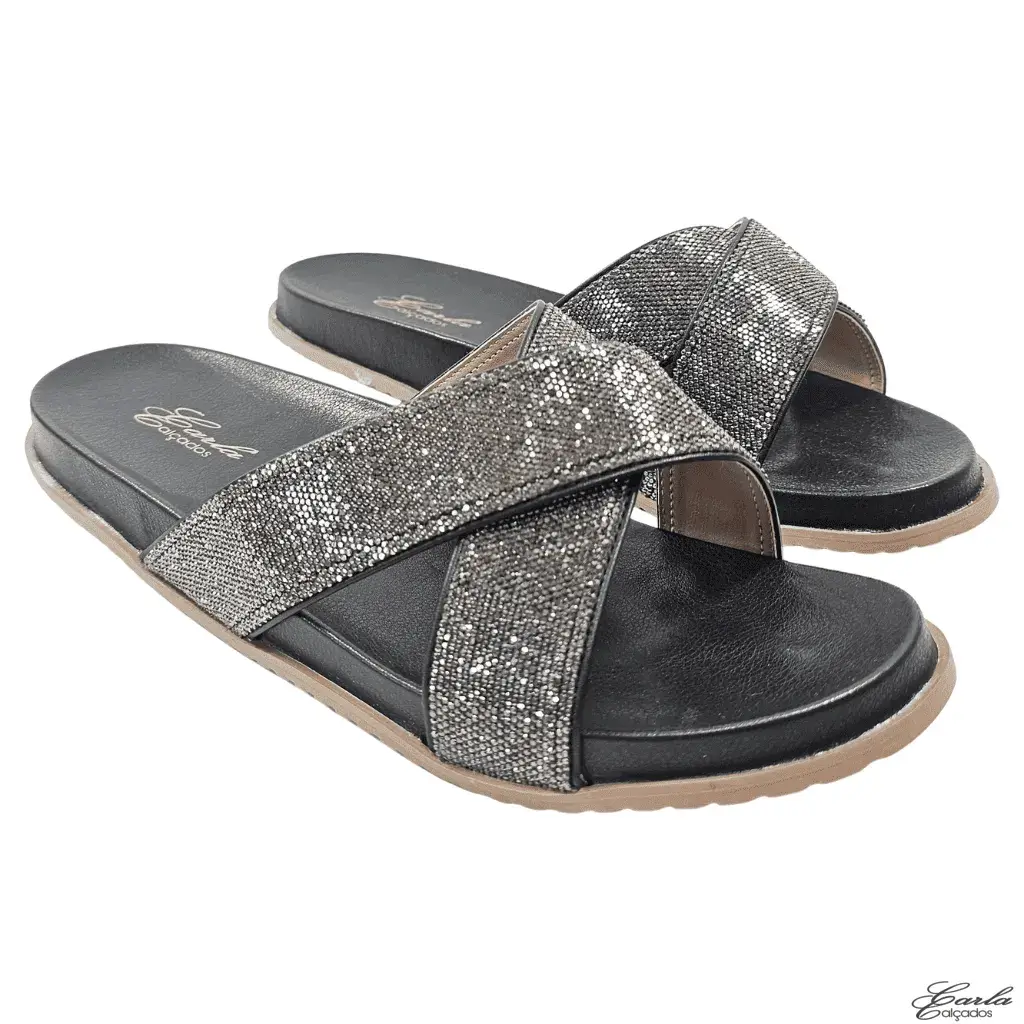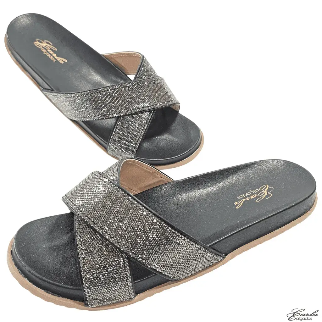 Papete Preta Strass Cruzado Tamanho Especial 41 ao 43