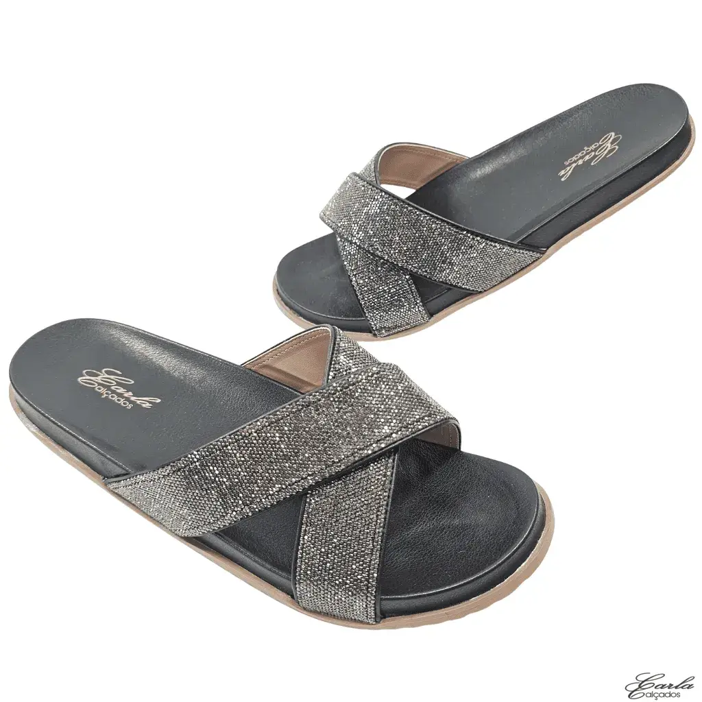 Ref: Papet 051 – Papete Preta Strass Cruzado Tamanho Especial