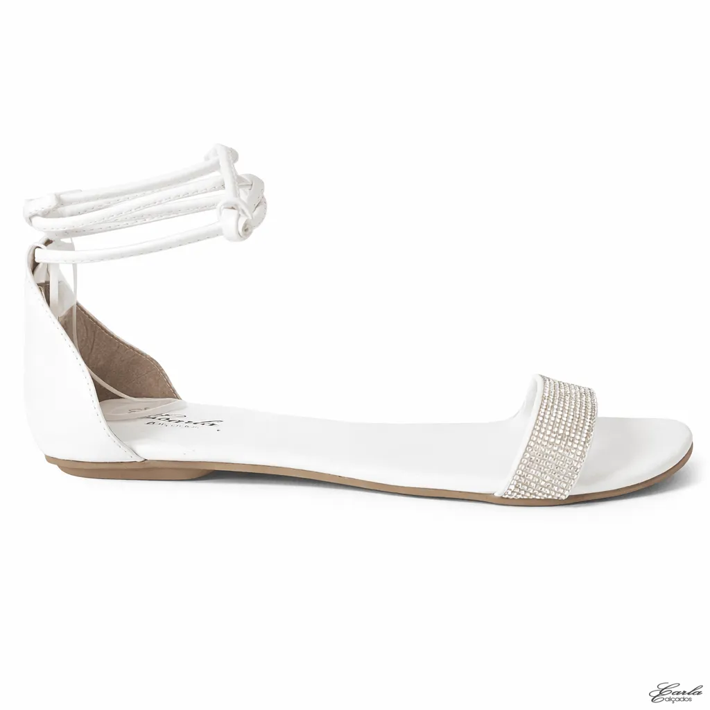 Rasteirinha Sandália Branca De Amarrar Strass Tamanho Especial