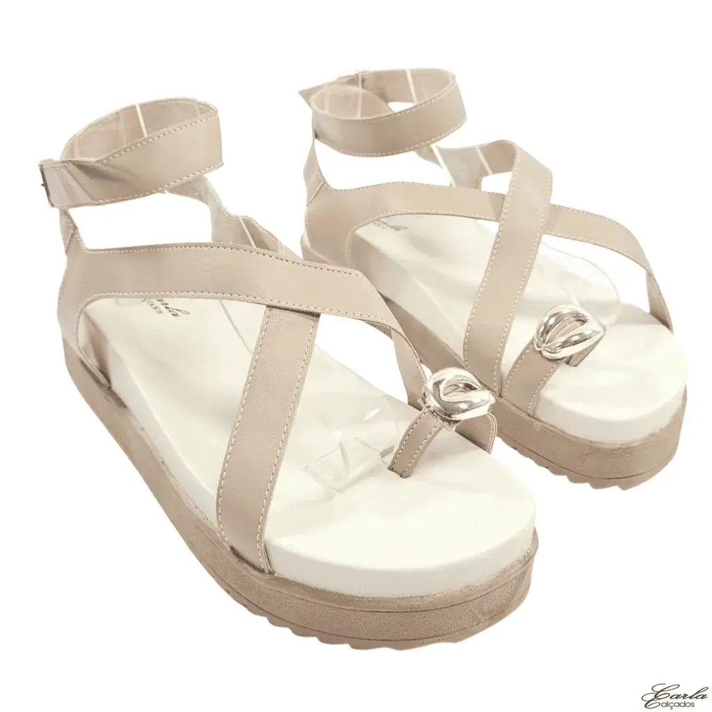A Plataforma Papete Boho Chic Thong Nude Tamanho Especial traz um estilo leve, moderno e com a delicadeza que só o tom nude oferece. O design thong (com encaixe no dedo) garante um visual atual e sofisticado, enquanto as tiras cruzadas valorizam o pé com um acabamento elegante e super feminino. Para completar, o detalhe metálico dourado adiciona um toque de charme que transforma qualquer look.