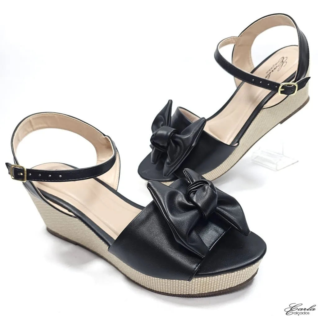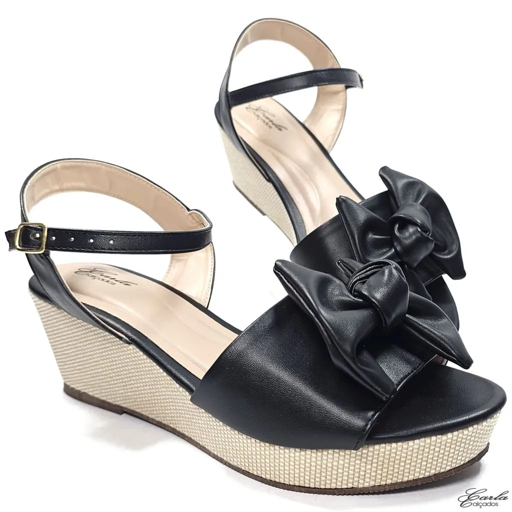 Plataforma Preta Salto Juta Tamanho Especial – Estilo e Conforto para Quem Calça do 41 ao 43