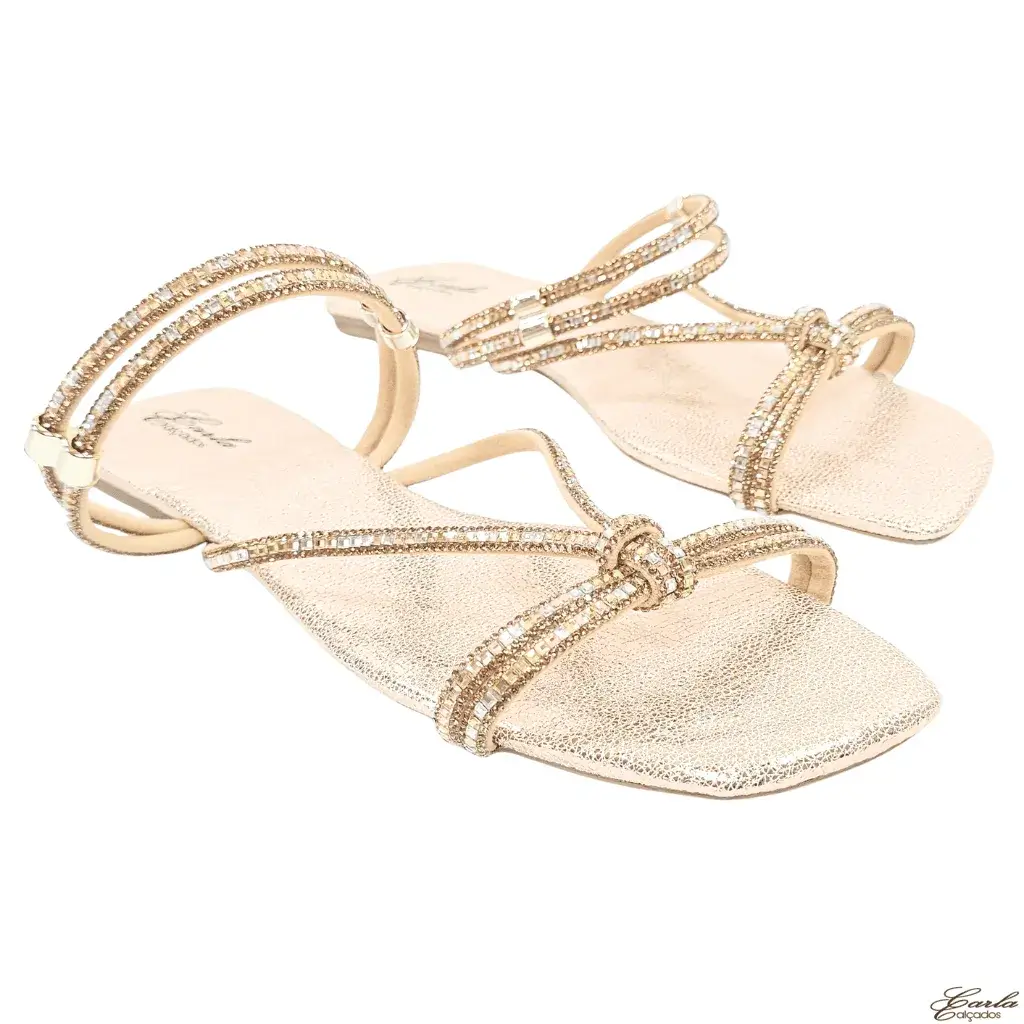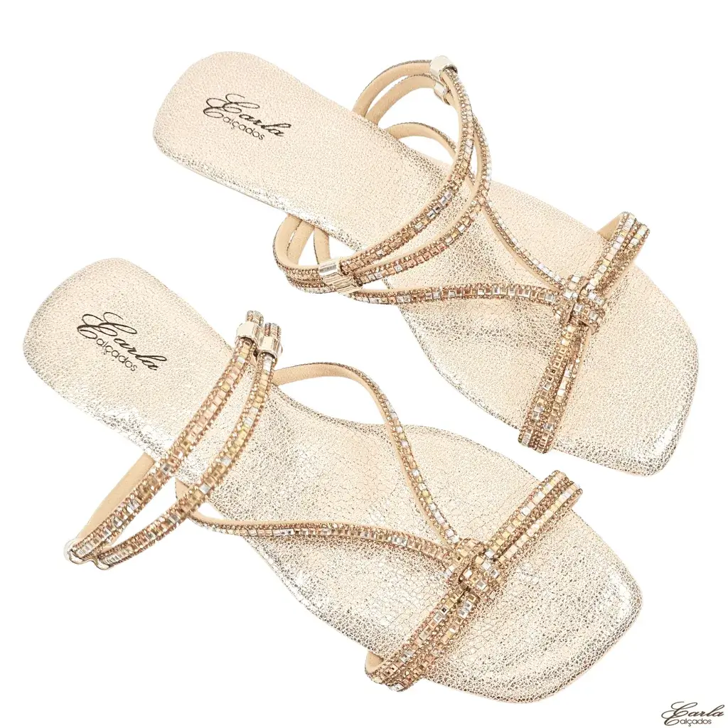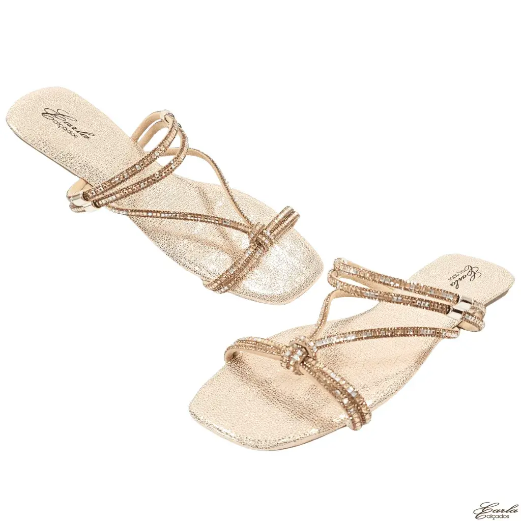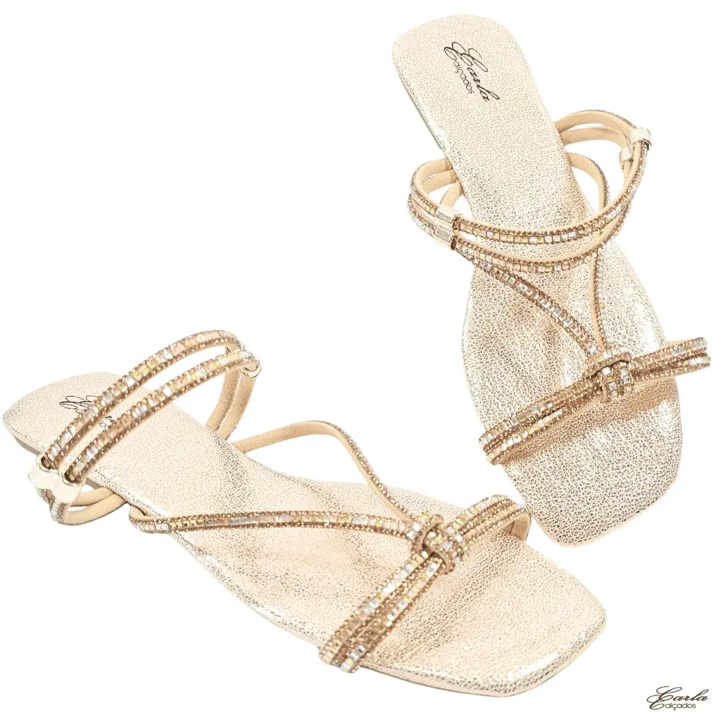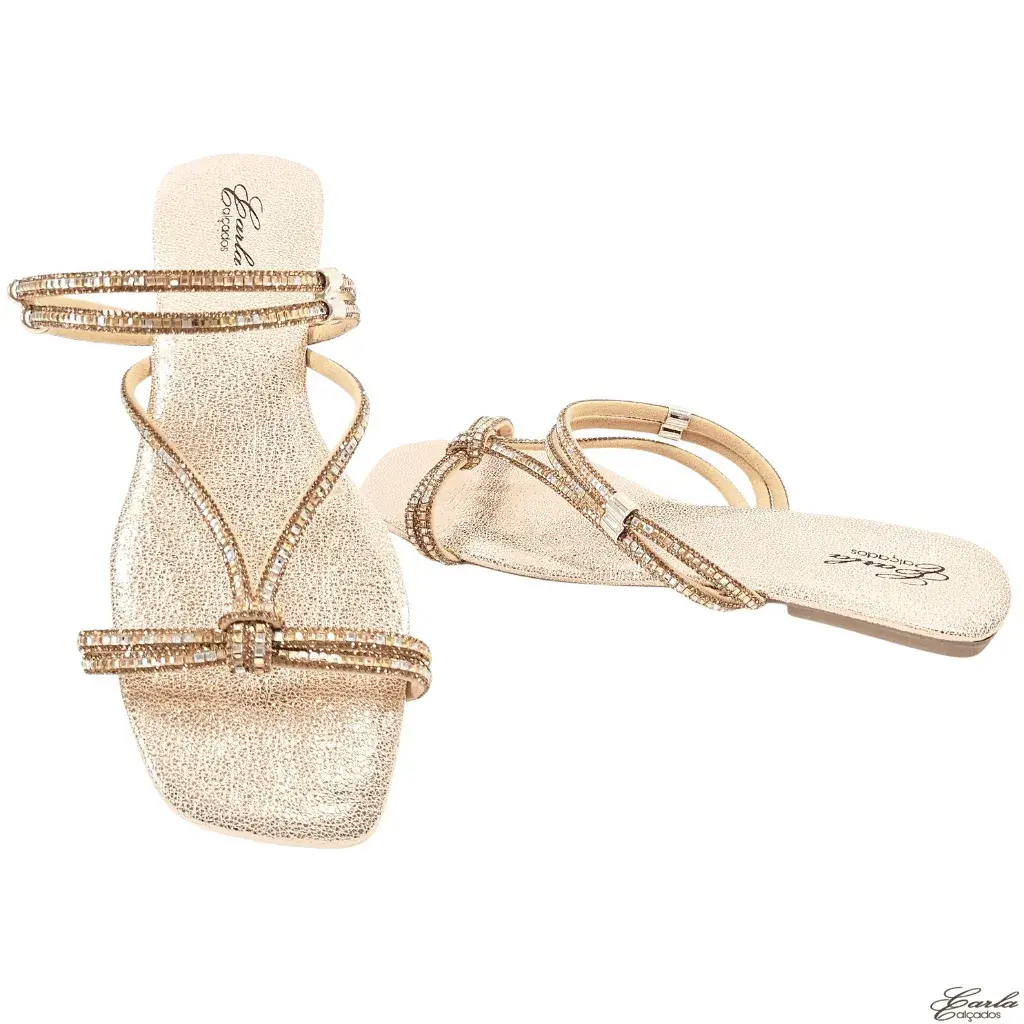 Rasteirinha Sandália Dourada Strass Tamanho Especial