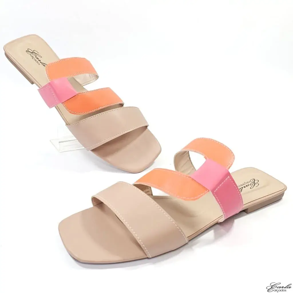 Colorida, leve e cheia de personalidade, a Rasteirinha Multicor Tamanho Especial 41 ao 44 traz um toque alegre e moderno para o seu dia a dia. Confeccionada em material sintético nude, ela se destaca pelas tiras nas cores nude, pink e laranja, que criam uma combinação vibrante e sofisticada — perfeita para quem busca um sapato feminino tamanho especial com estilo e autenticidade.