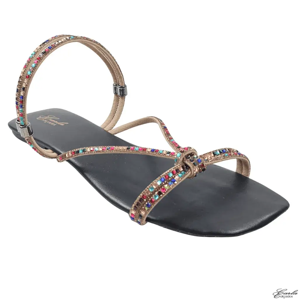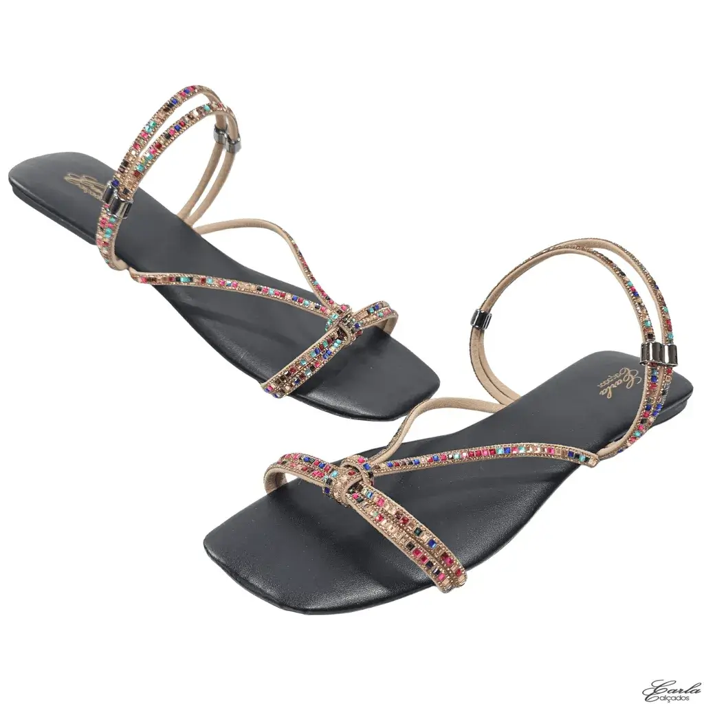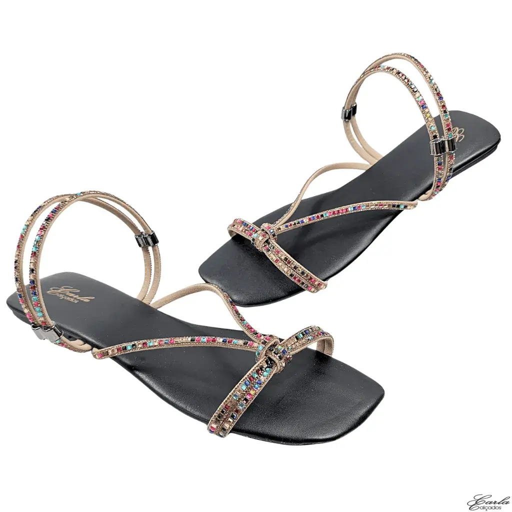 Rasteirinha Preta Pedraria Colorida Strass Tamanho Especial 41 ao 44 – Toque Vibrante com Conforto e Estilo