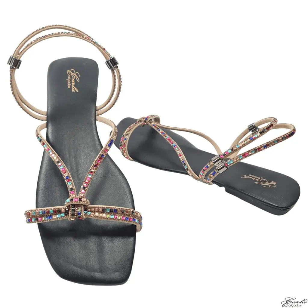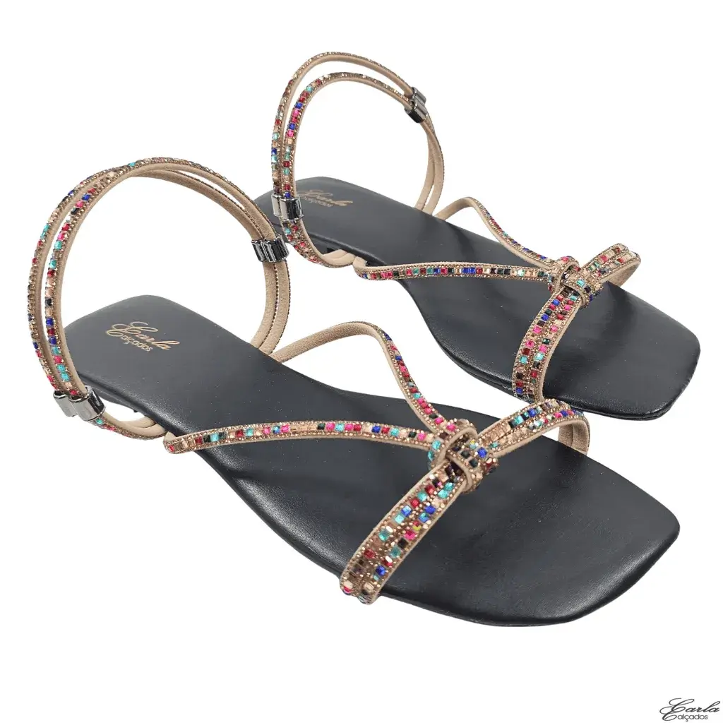 A Rasteirinha Preta Pedraria Colorida Strass é a escolha perfeita para quem deseja unir praticidade e um detalhe cheio de personalidade. Produzida em material sintético preto, ela traz o charme moderno do bico quadrado e o brilho encantador das pedrarias em strass colorido, que iluminam o visual de forma única.