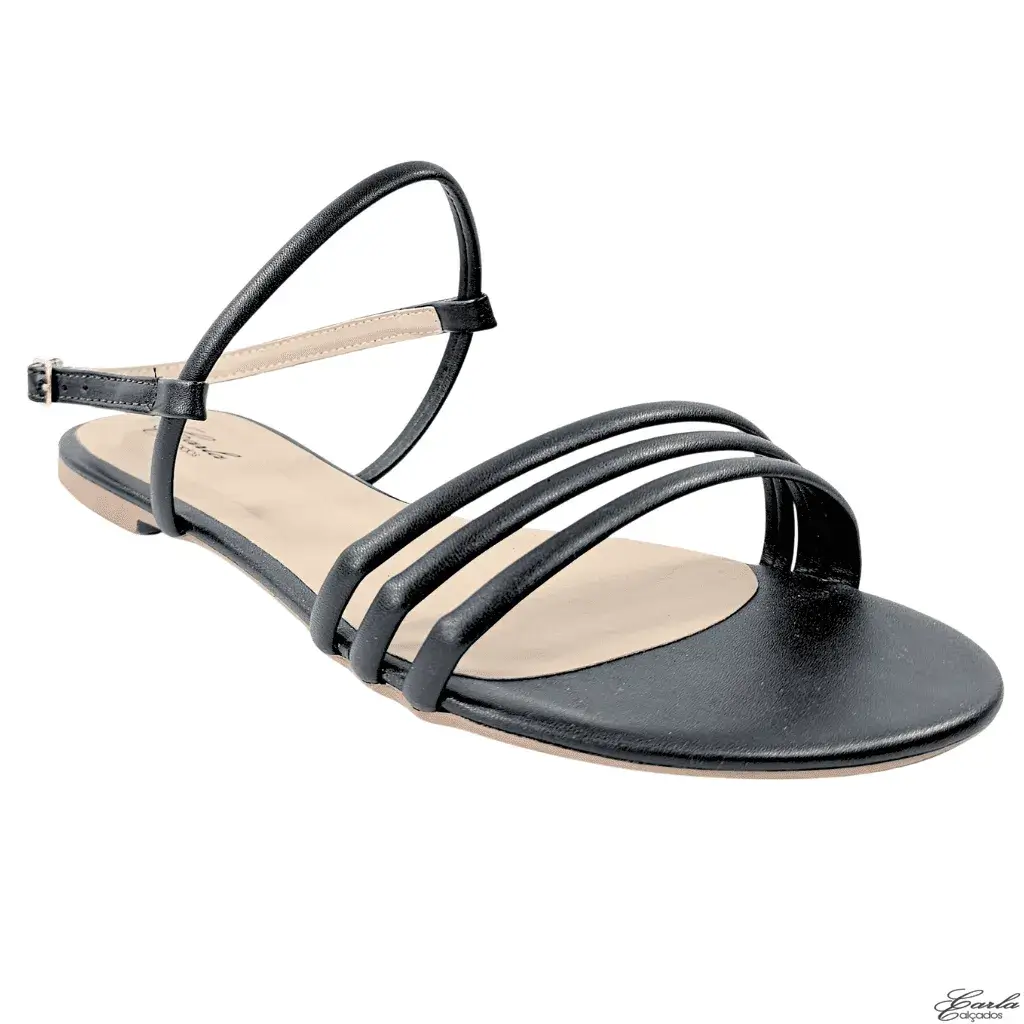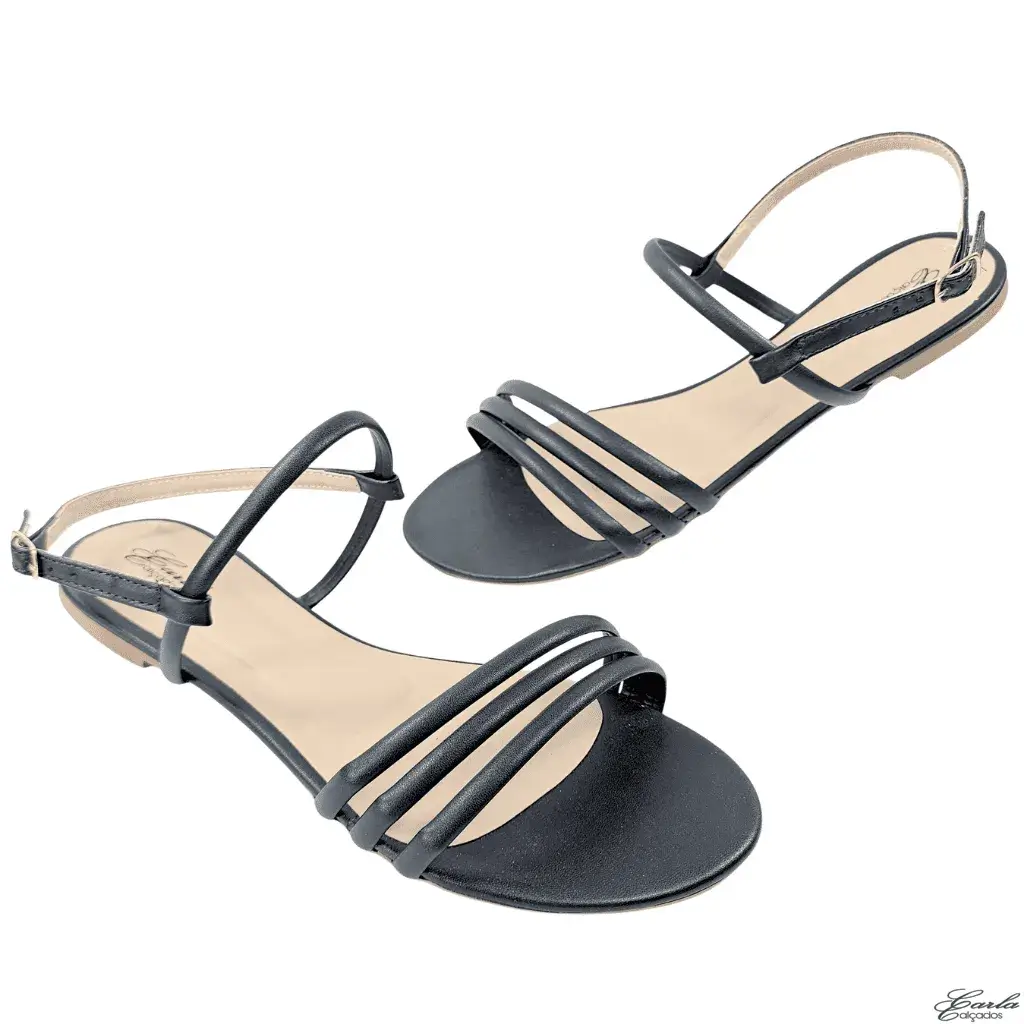 Rasteirinha Preta Tiras Tamanho Especial 41 ao 44