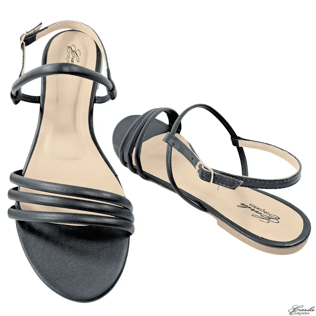 Referência: R 926 – Rasteirinha Preta Tiras Tamanho Especial 41 ao 44