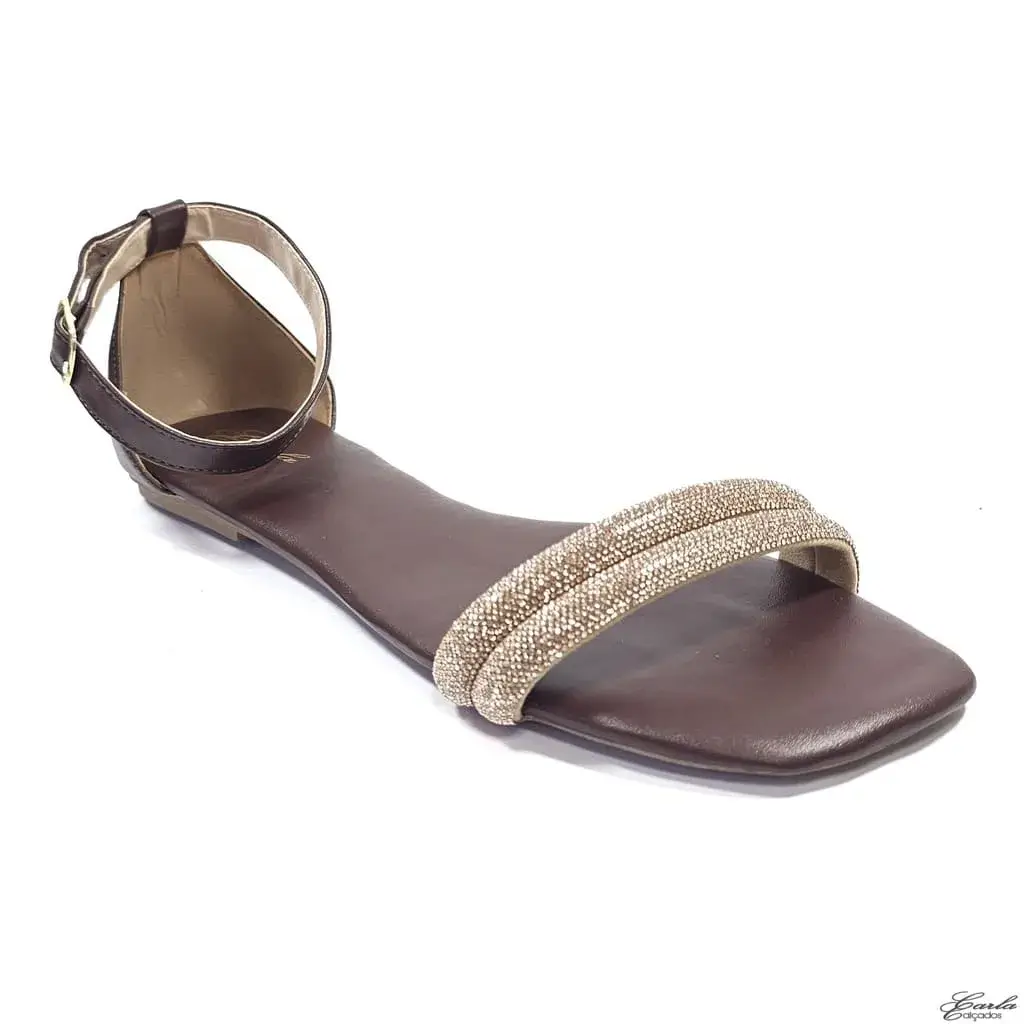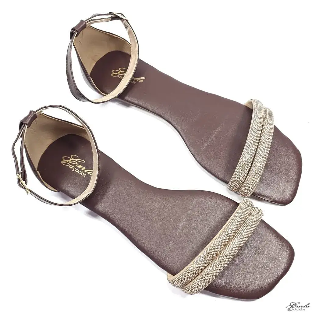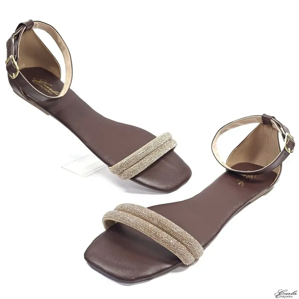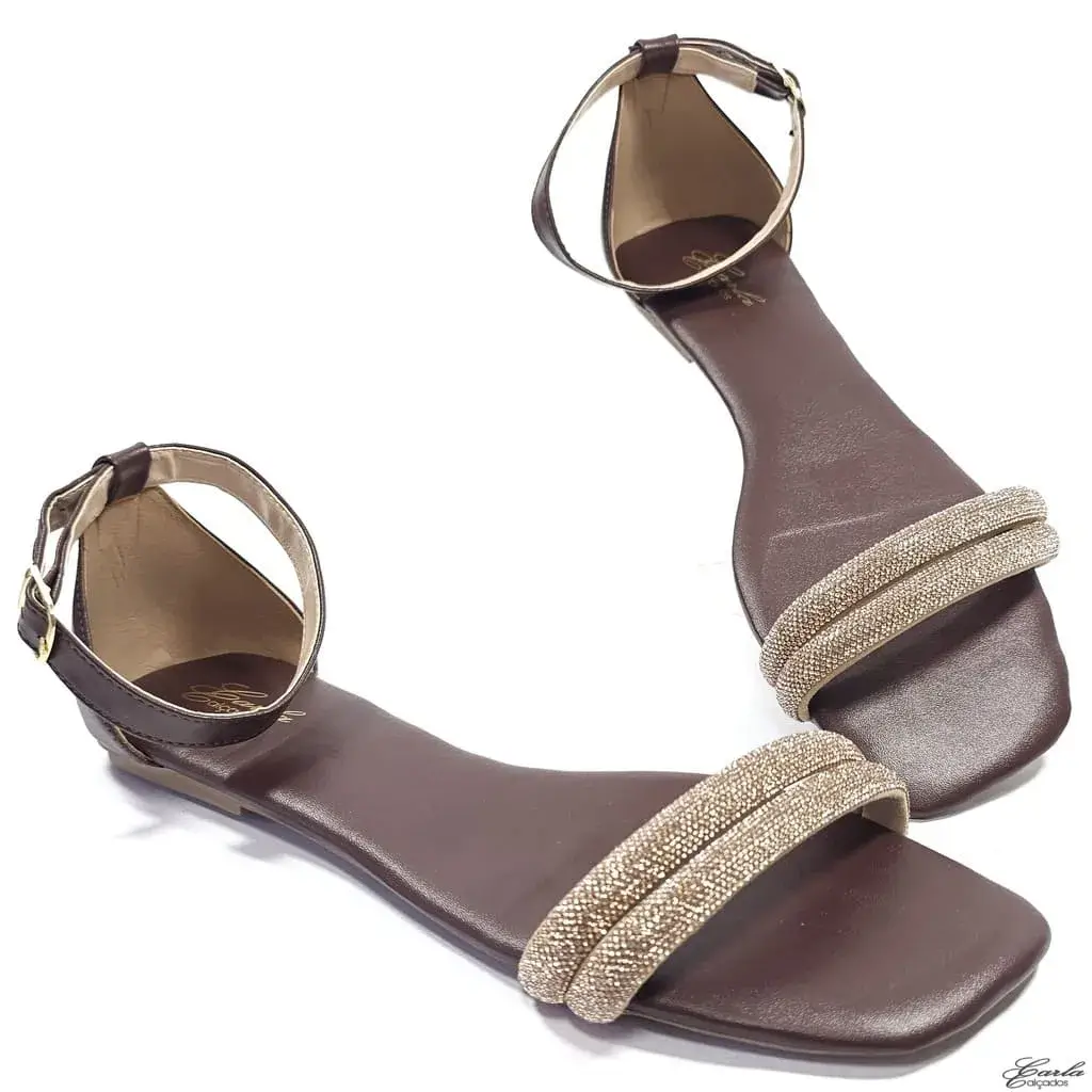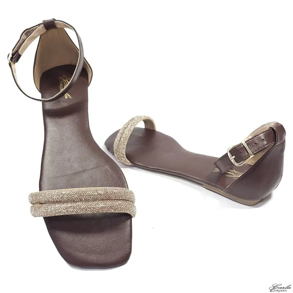 Referência: R 974 – Rasteirinha Sandália Marrom Strass Tamanho Especial