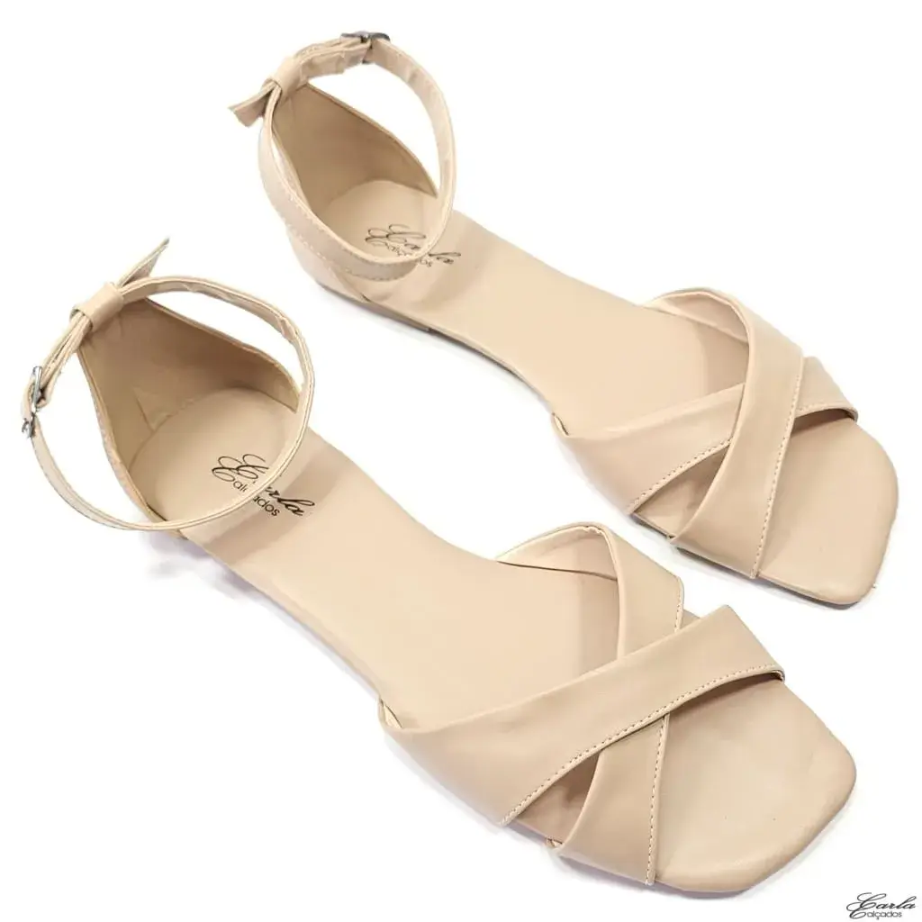 Rasteirinha Sandália Nude Cruzada Tamanho Especial