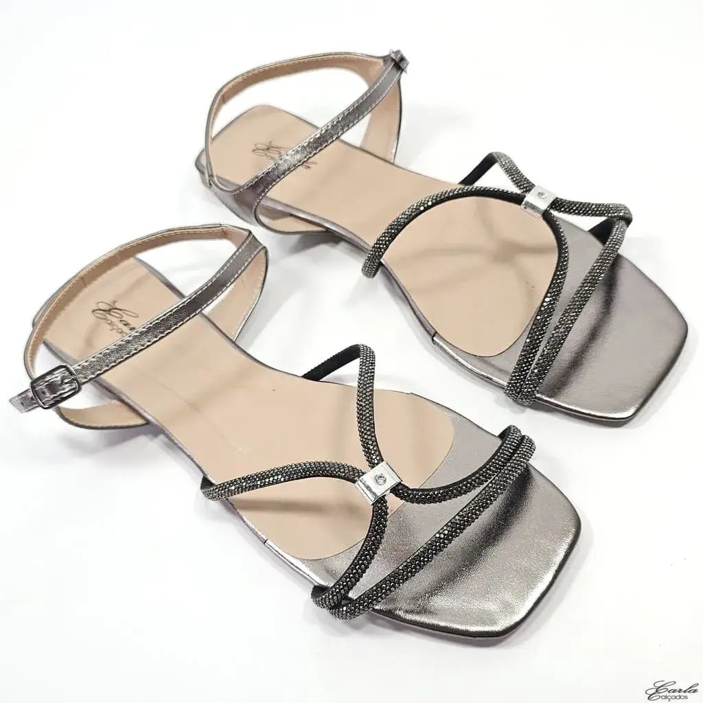 Brilhante na medida certa, a Rasteirinha Sandália Prata Velho Strass Tamanho Especial da Carla Calçados é sinônimo de elegância moderna e conforto absoluto. Produzida em material metalizado prata velho, ela se destaca pelo acabamento sofisticado e pelas tiras adornadas com strass, que trazem um toque de luz e requinte a cada passo.