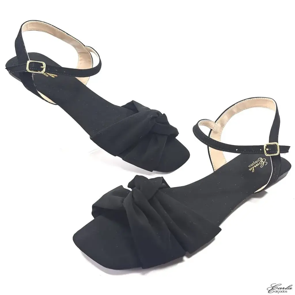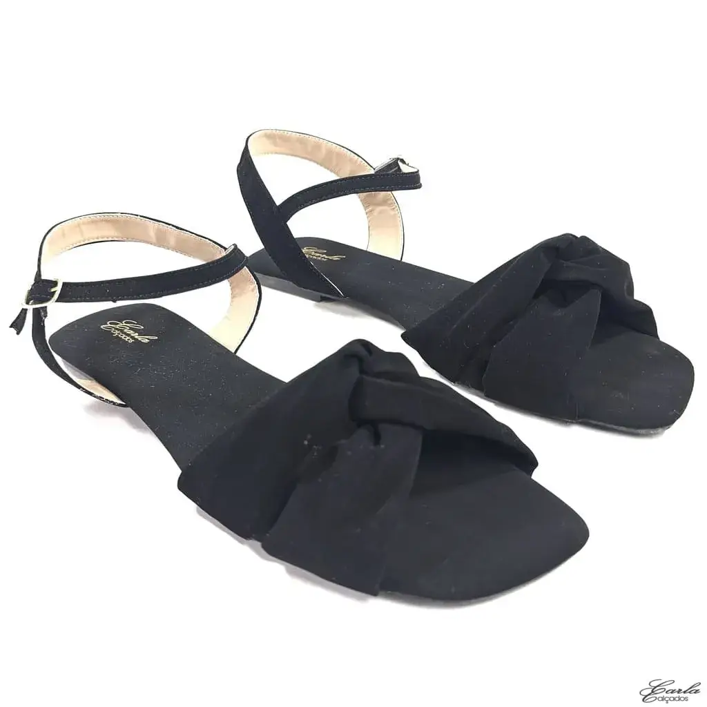 Rasteirinha Sandália Preta Cruzada Tamanho Especial (41 ao 44) – Carla Calçados