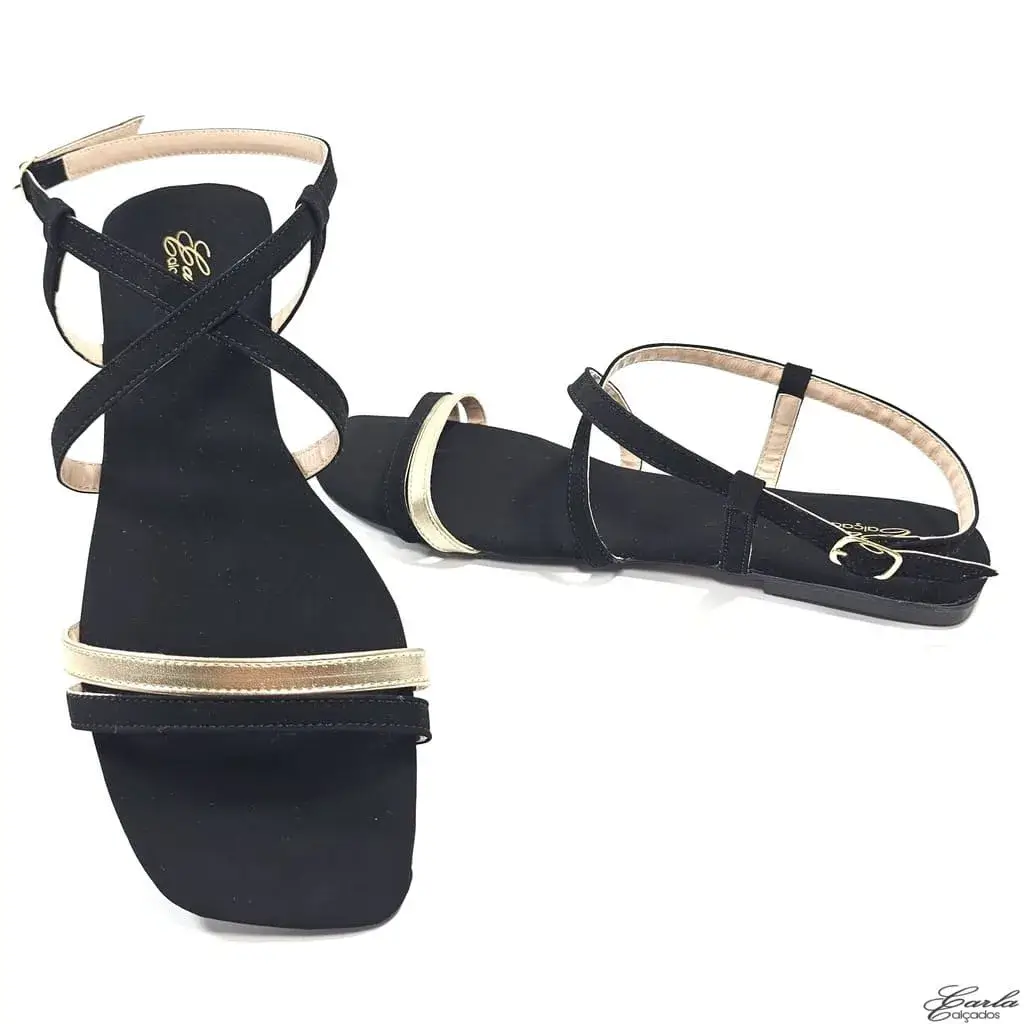 Referência: R 957 – Rasteirinha Sandália Preta Dourada Tamanho Especial