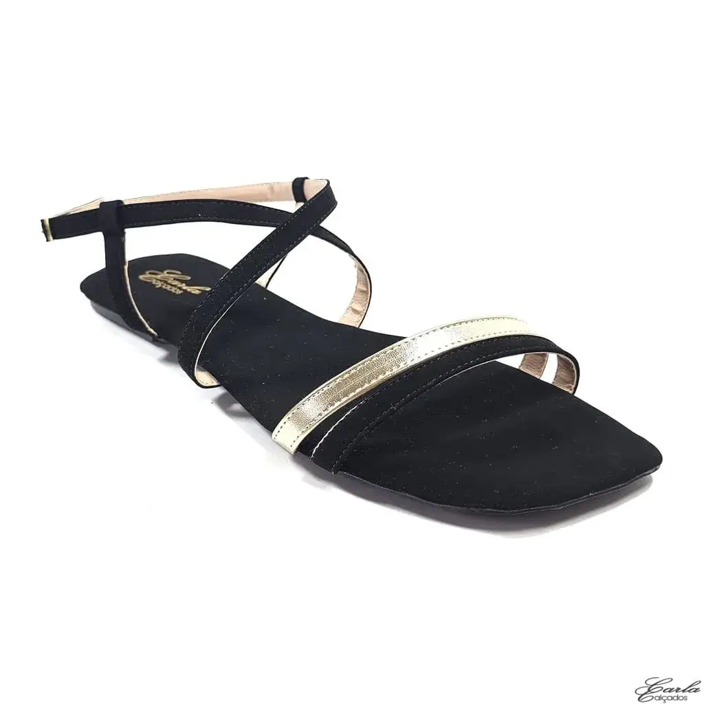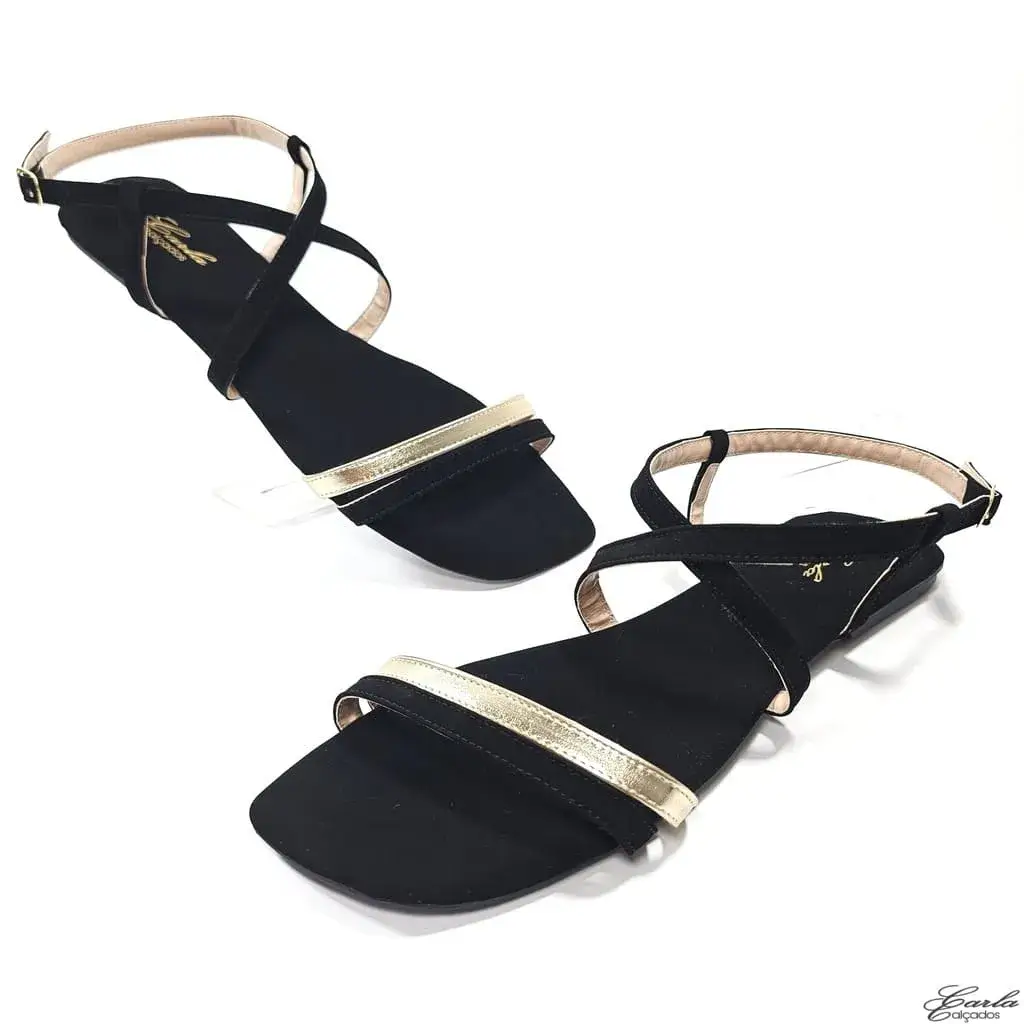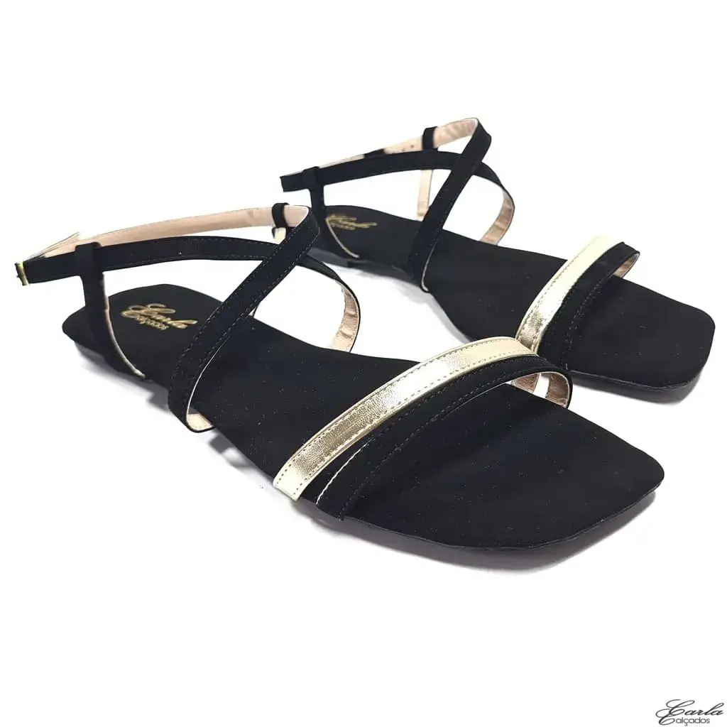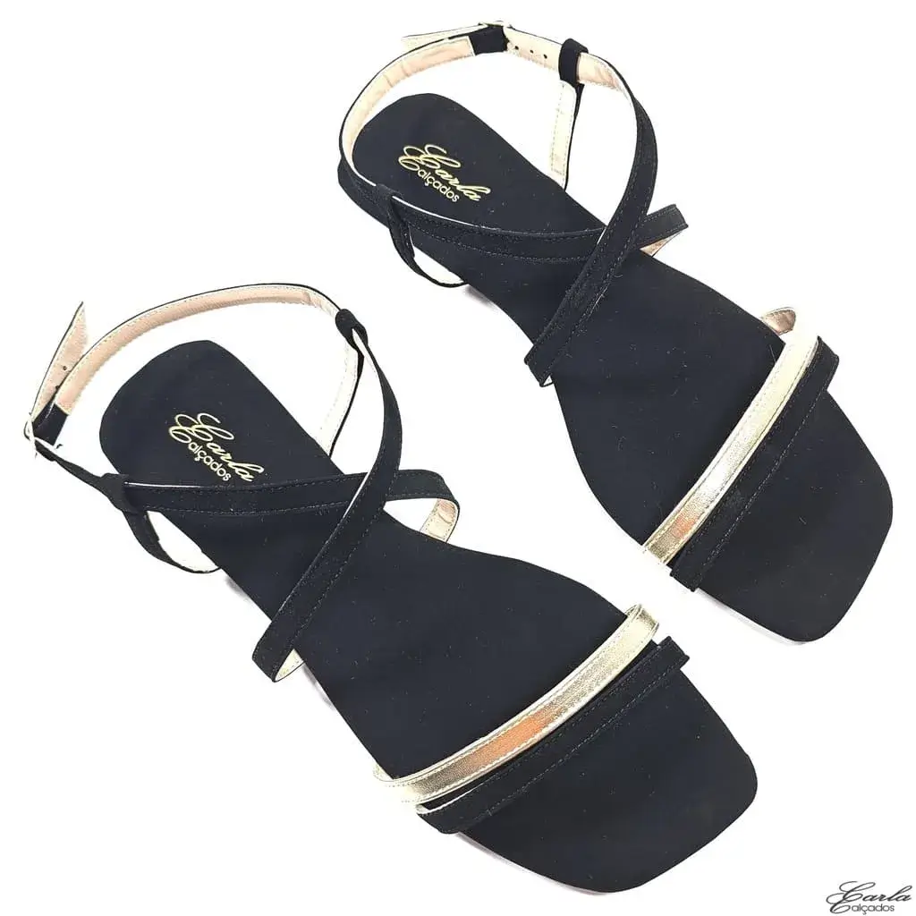 Com um contraste elegante entre o preto e o dourado, esta Rasteirinha Sandália Preta Dourada Tamanho Especial é sinônimo de estilo e sofisticação. Confeccionada em nobuck preto macio, ela traz uma combinação refinada de tira preta e dourada, criando um visual moderno e versátil. Ideal para quem procura um calçado feminino de tamanho especial que una conforto, beleza e personalidade.