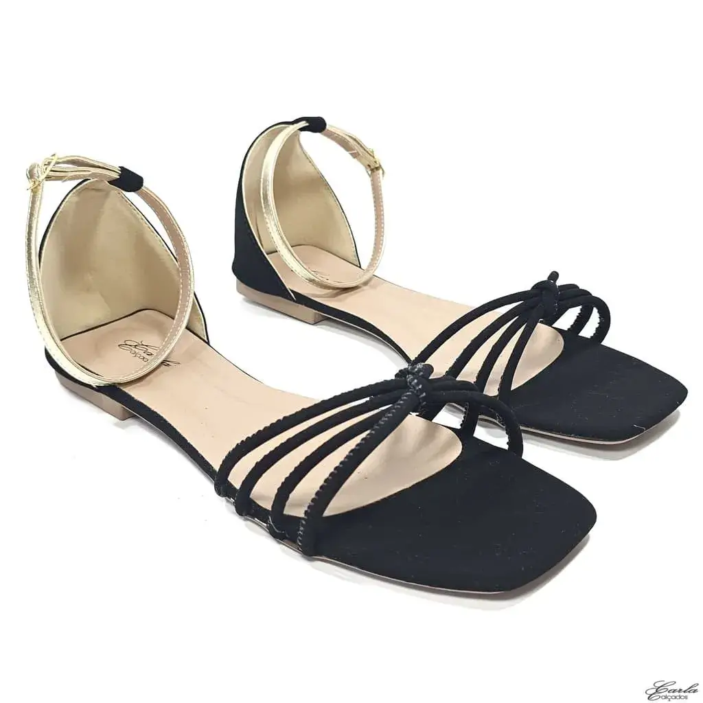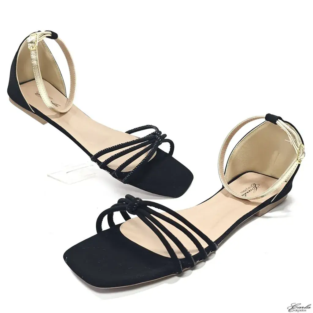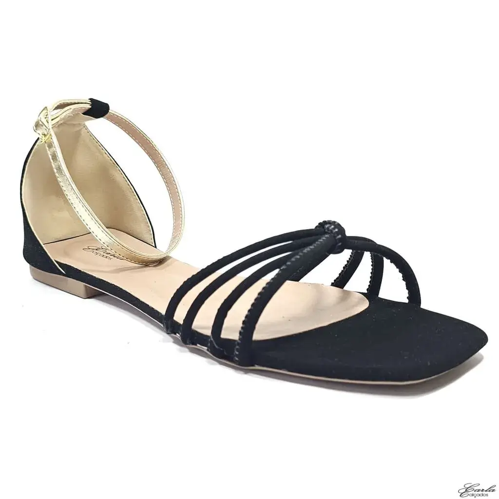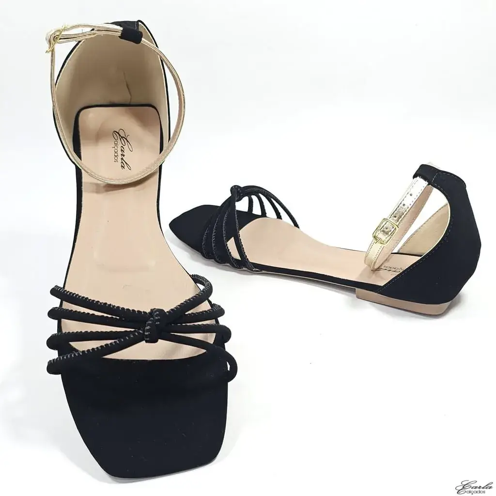 Elegante e versátil, a Rasteirinha Sandália Preta Tira Dourada Tamanho Especial da Carla Calçados é o modelo ideal para quem valoriza conforto, sofisticação e design moderno. Produzida em material nobuck preto, ela apresenta um cabedal composto por tiras finas e delicadas, que abraçam o pé com suavidade e elegância.