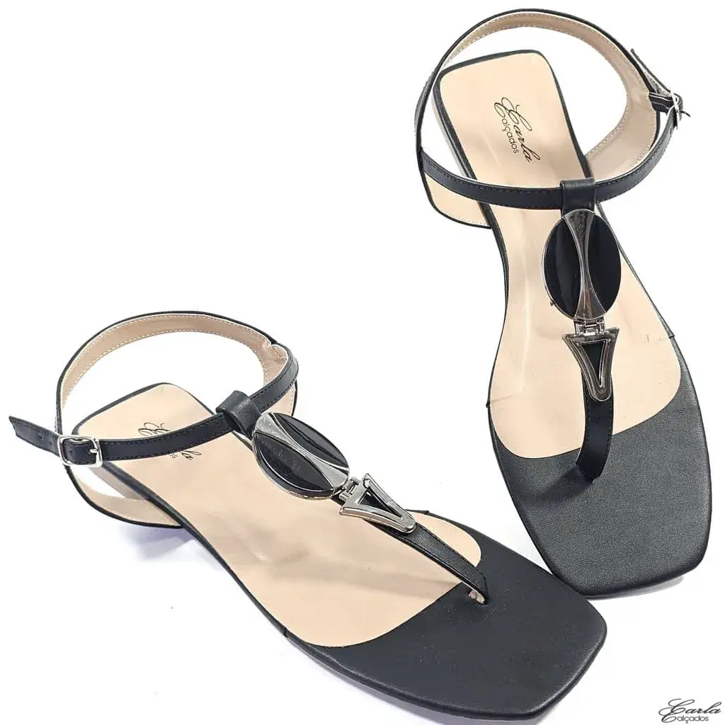 A combinação perfeita entre elegância e conforto está na Rasteirinha Sandália Thong Preta Tamanho Especial. Inspirada no modelo internacional Thong, essa sandália de dedo em material sintético preto traz um visual moderno e sofisticado, ideal para mulheres que buscam um sapato feminino tamanho especial cheio de estilo.