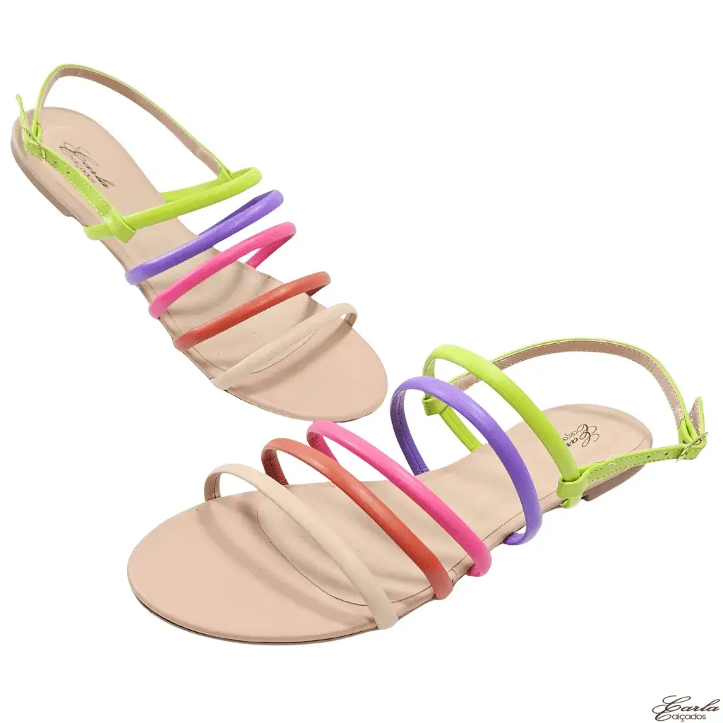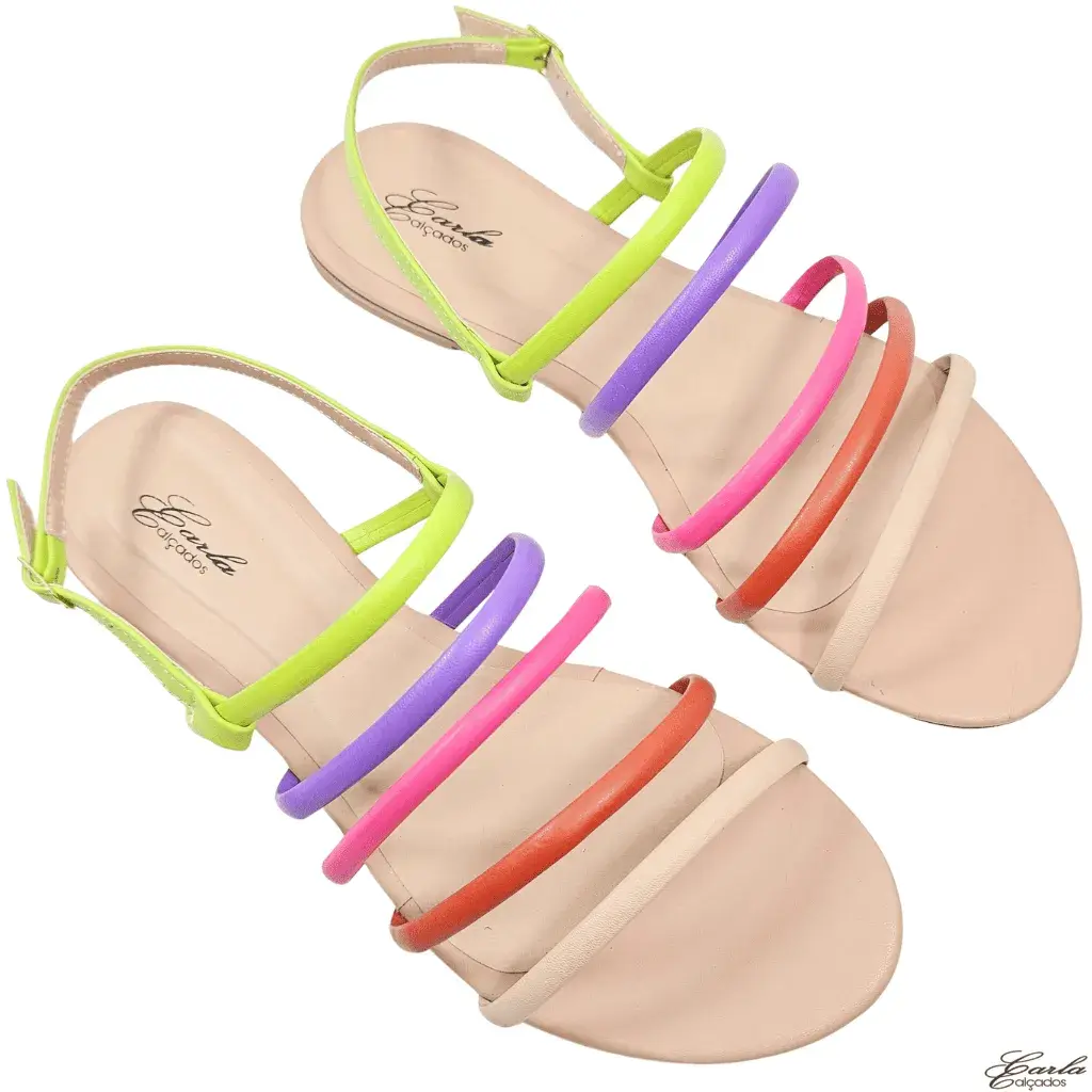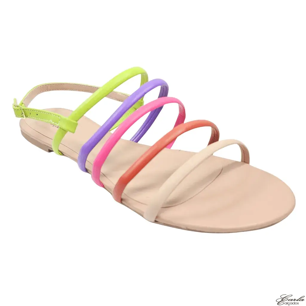 Cheia de alegria e estilo, esta Rasteirinha Sandália Tiras Colors Tamanho Especial é perfeita para quem adora dar um toque de cor aos looks sem abrir mão da elegância. Produzida em material sintético nude com tiras coloridas, ela é leve, moderna e ideal para mulheres que buscam um calçado feminino de tamanho especial com design criativo e confortável.