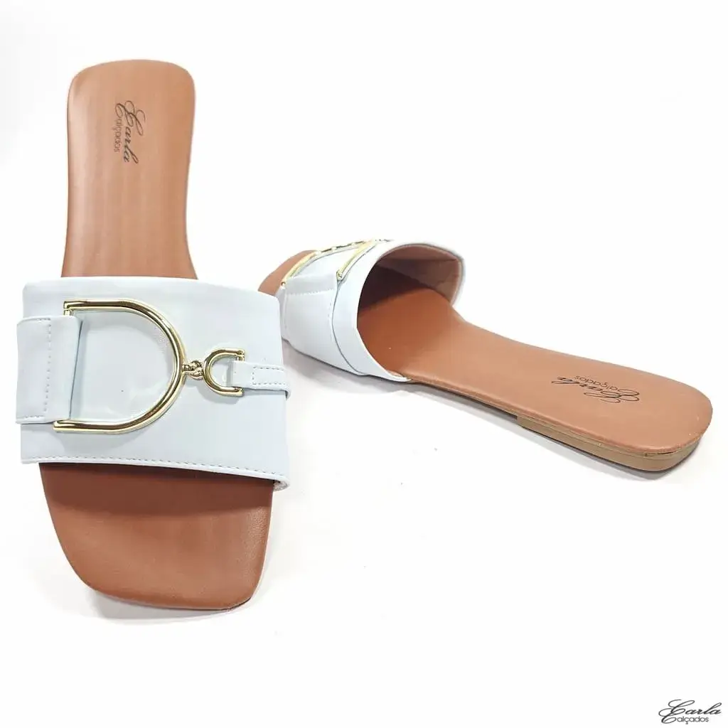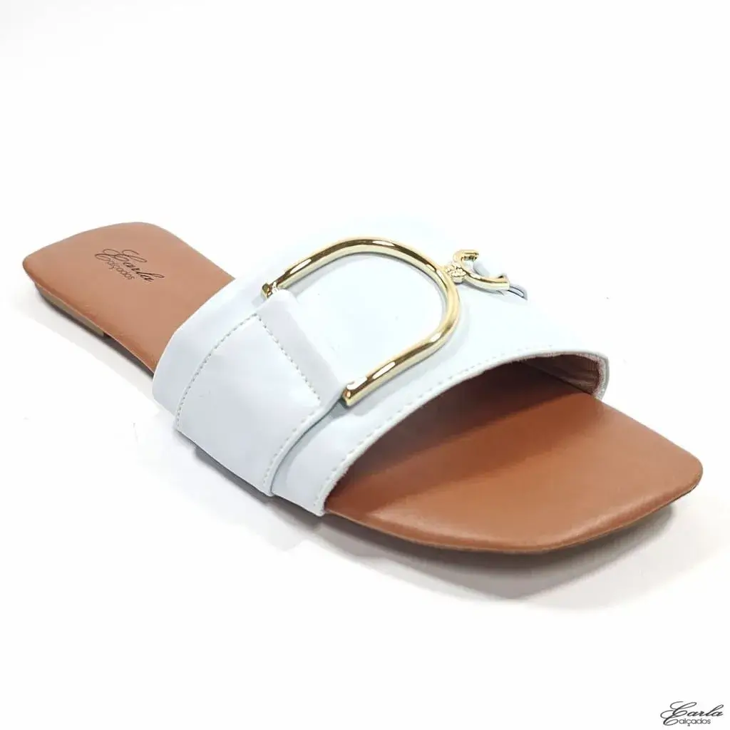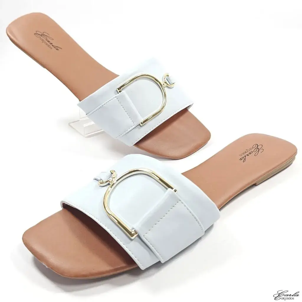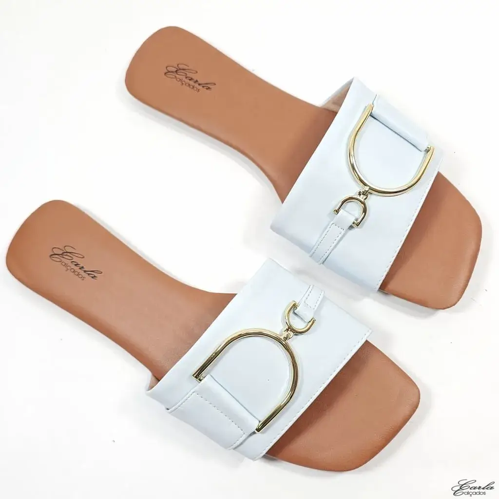 Com cabedal em material sintético azul claro e acabamento refinado, o modelo slide apresenta uma fivela metalizada que adiciona charme e sofisticação ao design. O bico quadrado garante um visual contemporâneo, enquanto a palmilha confortável proporciona bem-estar durante todo o dia. Além disso, a sola emborrachada oferece estabilidade em cada passo, tornando essa rasteirinha perfeita para acompanhar sua rotina com estilo e segurança.