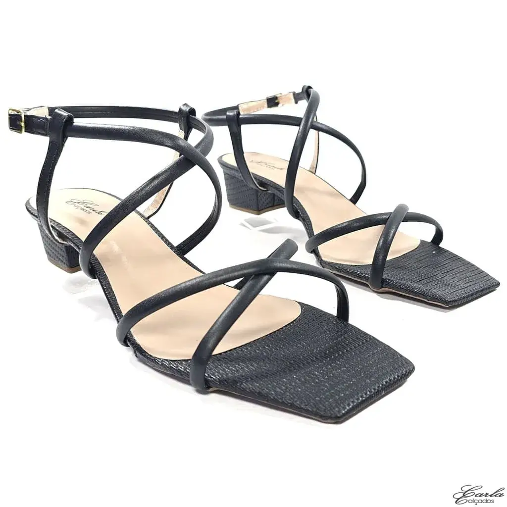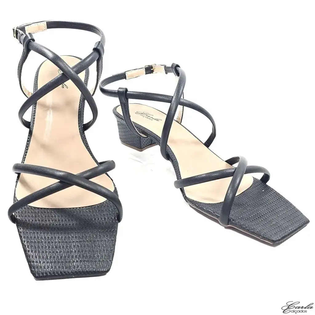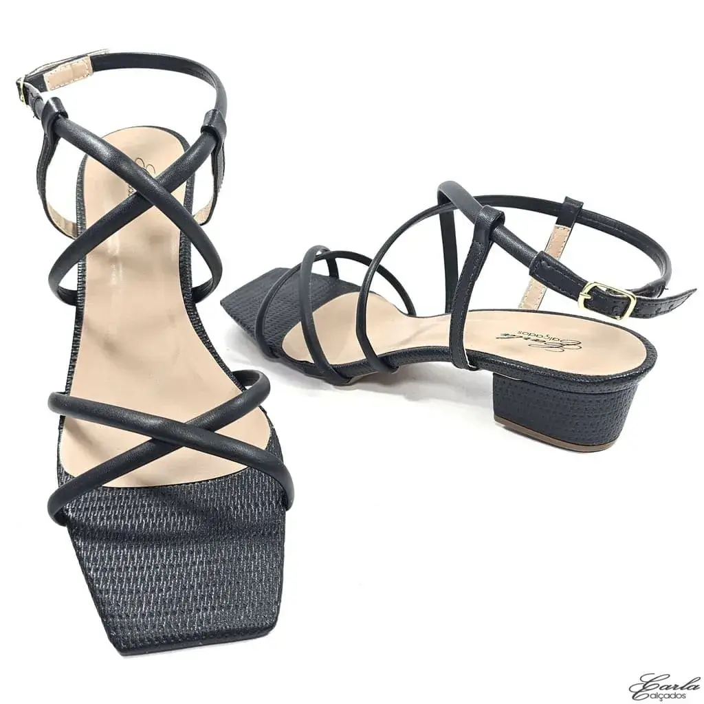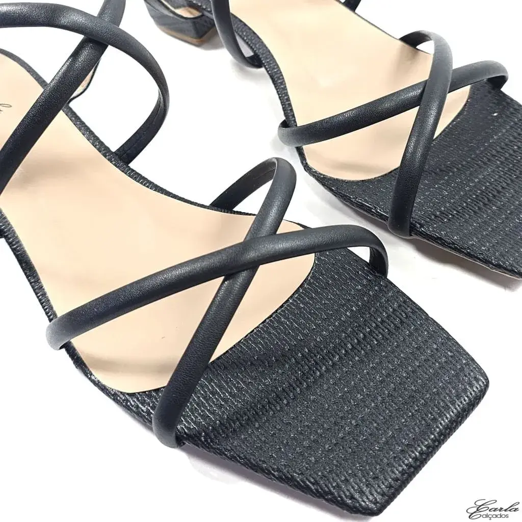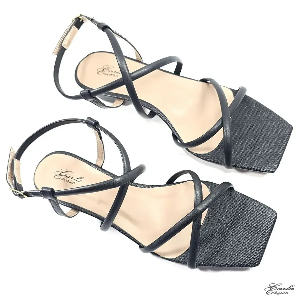 Referência: SN 479 – Sandália Preta Salto 3cm Tiras Finas Tamanho Especial