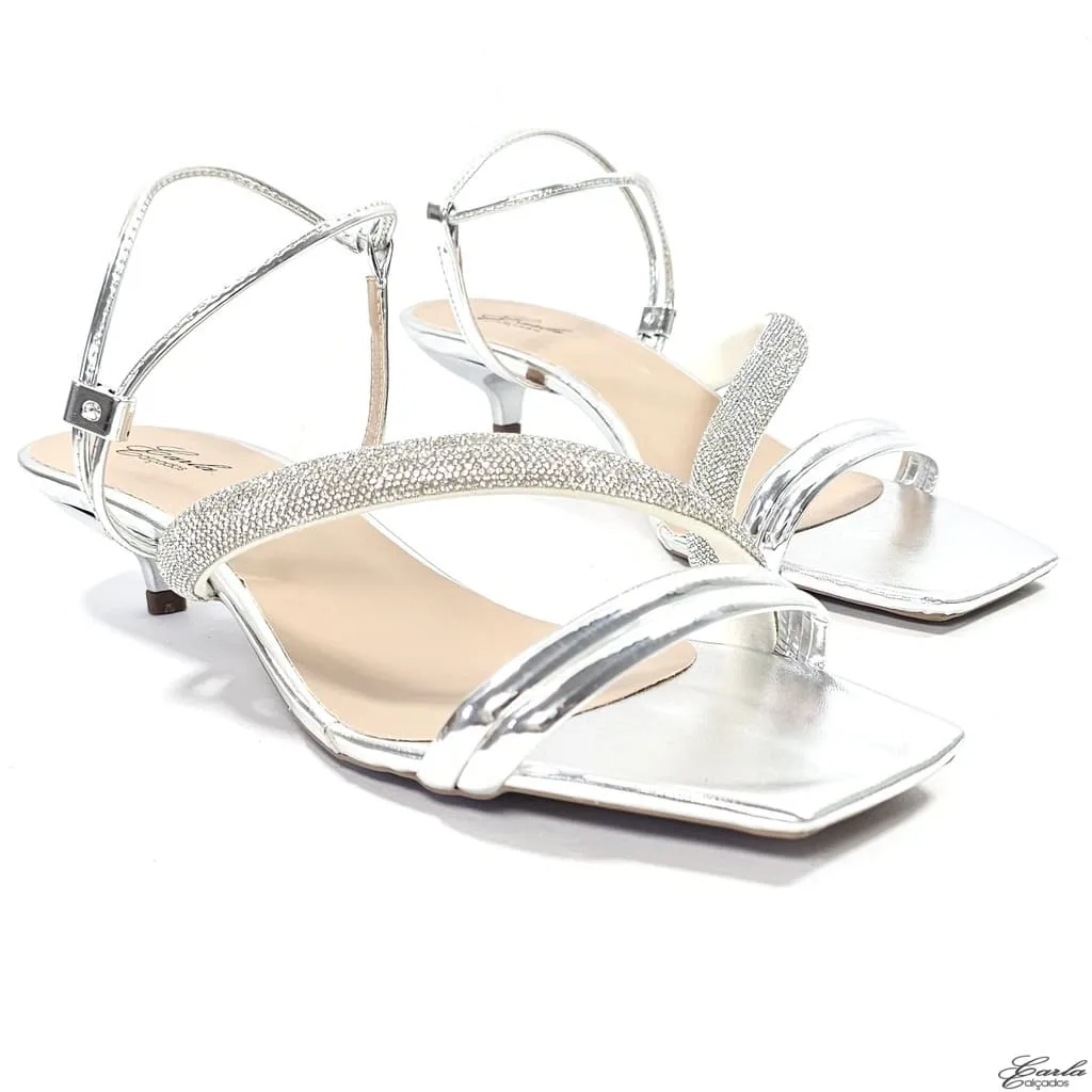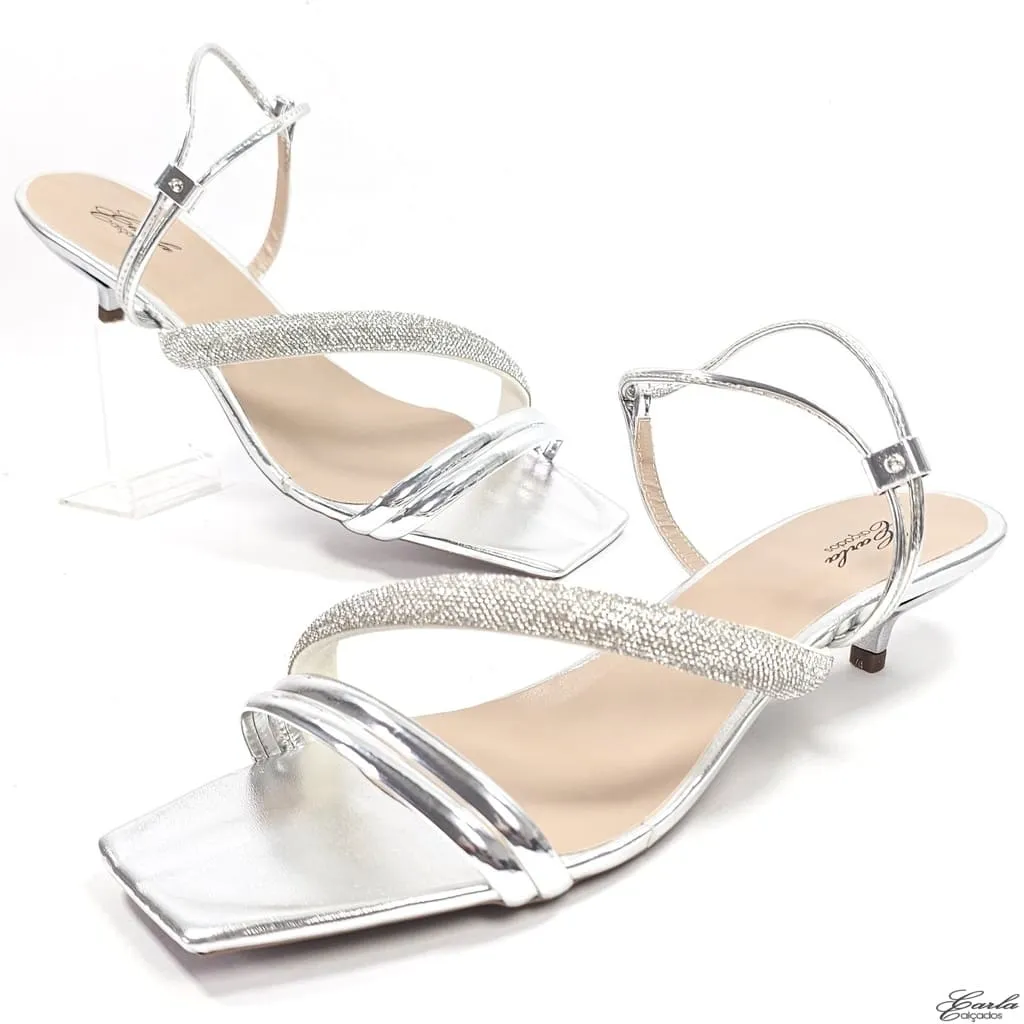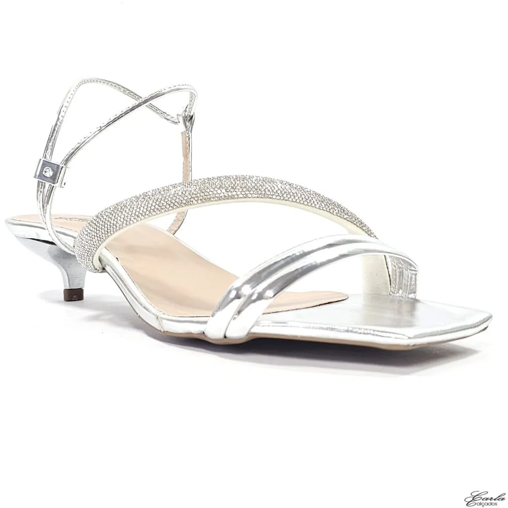 Referência: SN 473 – Sandália Salto 3cm Metalizada Prata Strass Tamanho Especial