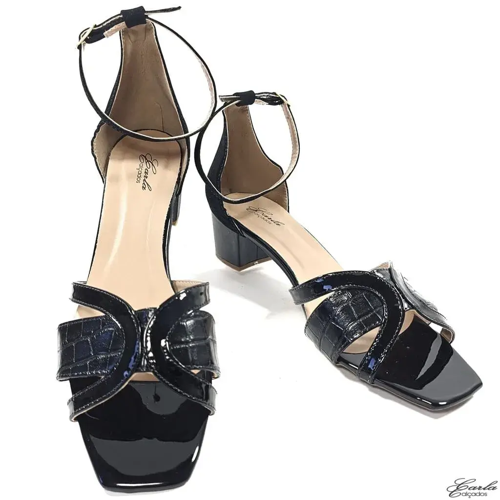 Referência: SN 476 – Sandália Salto 5cm Verniz Preta Croco Tamanho Especial
