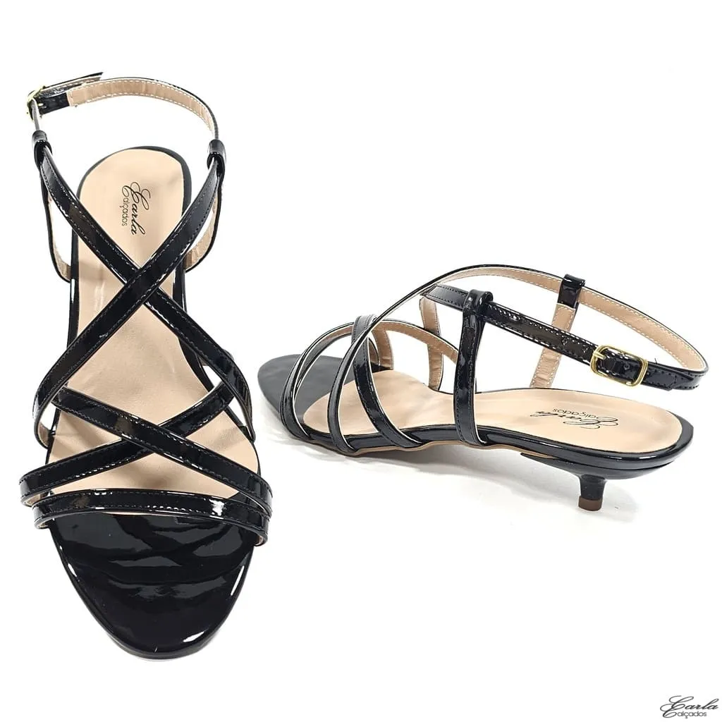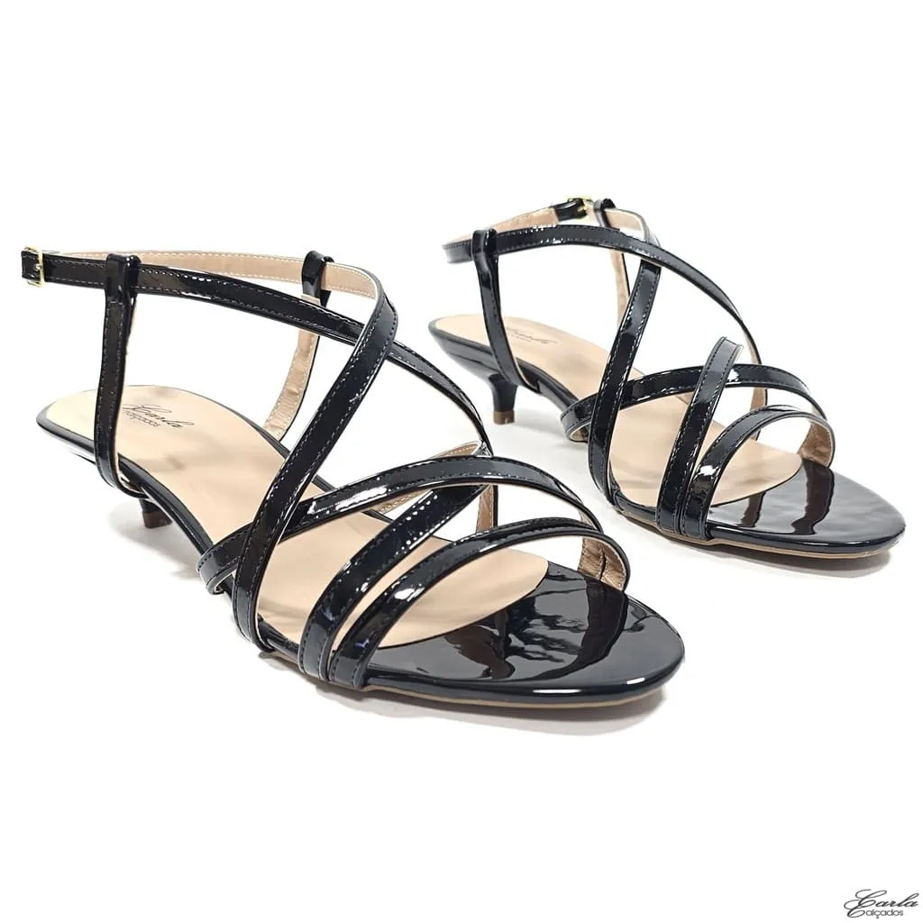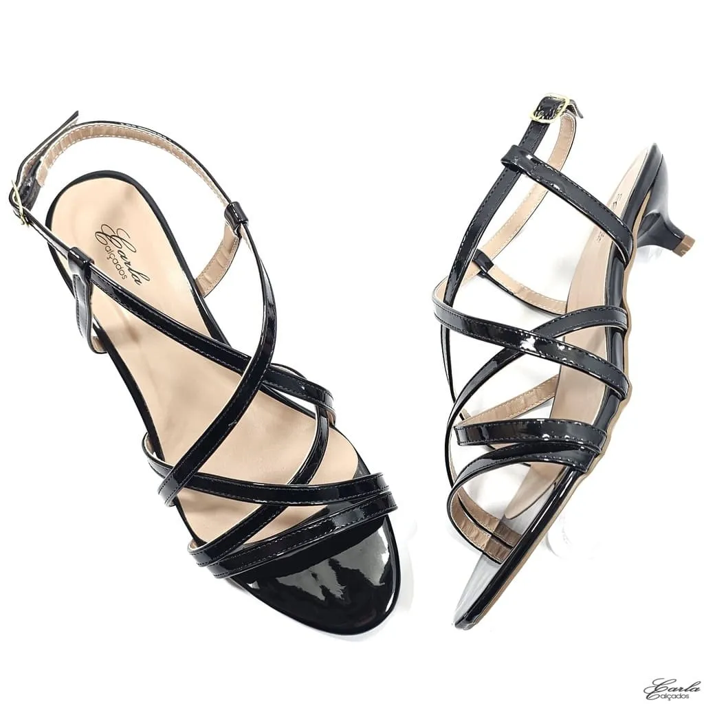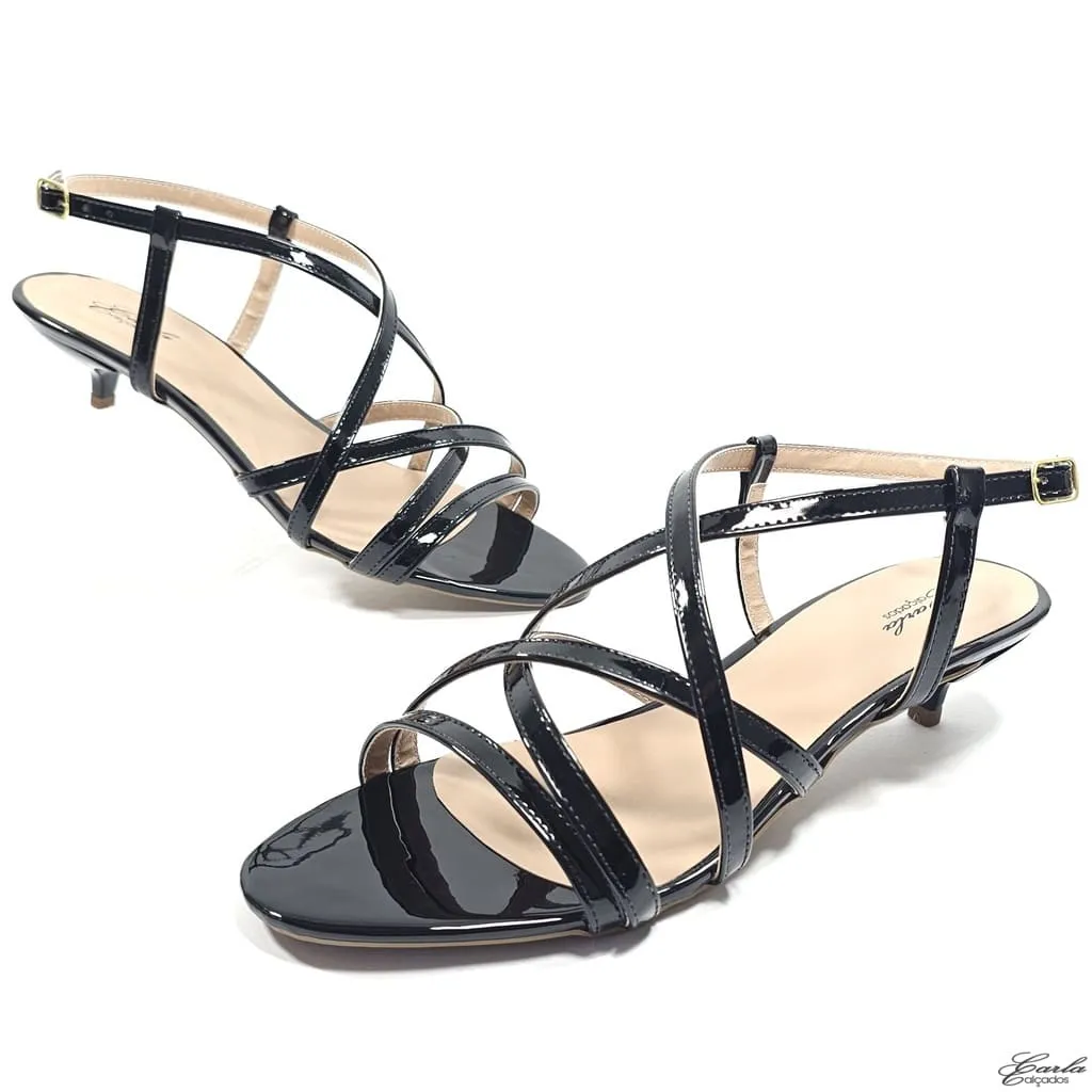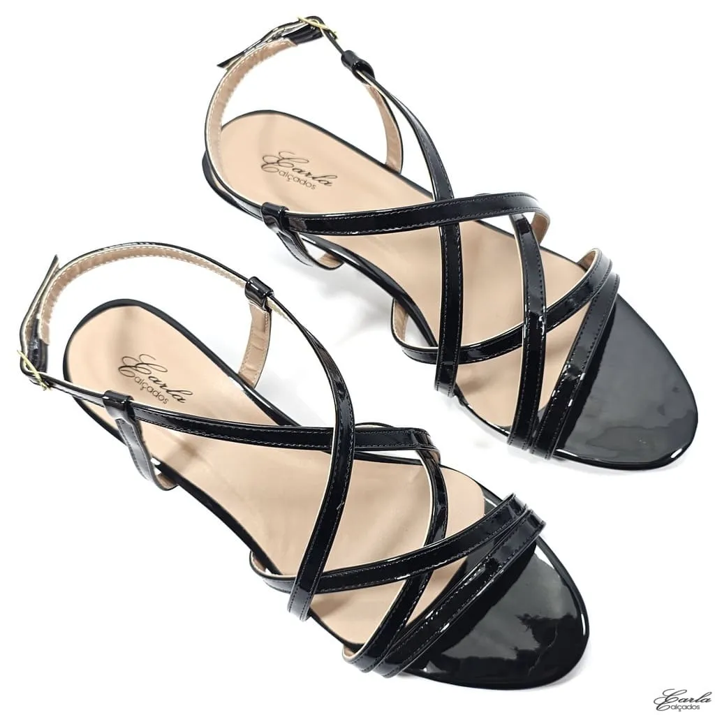 Referência: SN 459 – Sandália Salto Fino 3cm Preta Verniz Tamanho Especial