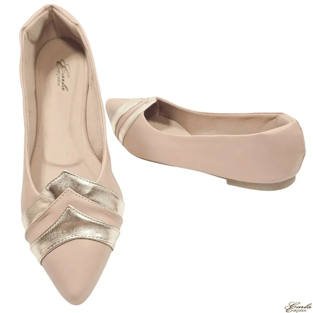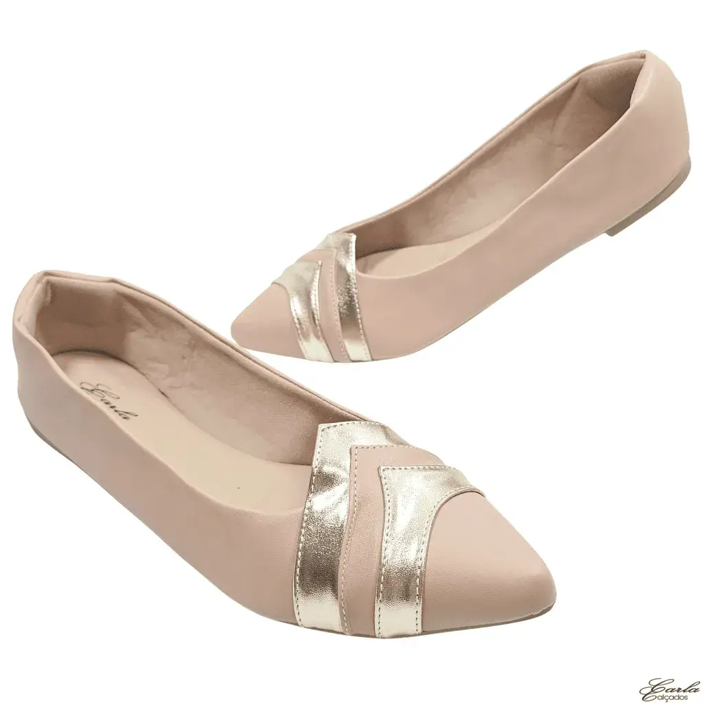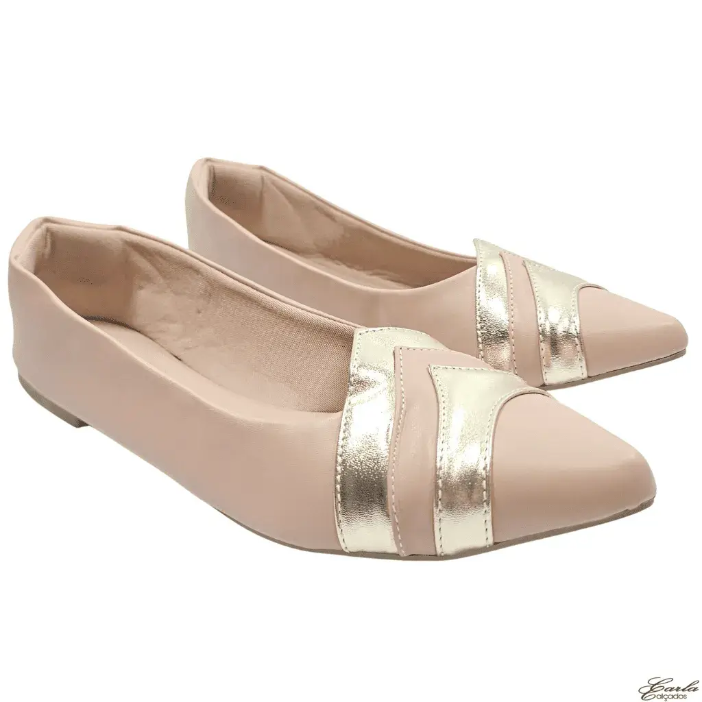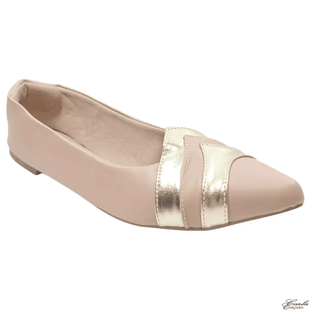 Referência: 1973 – Sapatilha Bege Detalhe Ouro Light Tamanho Especial