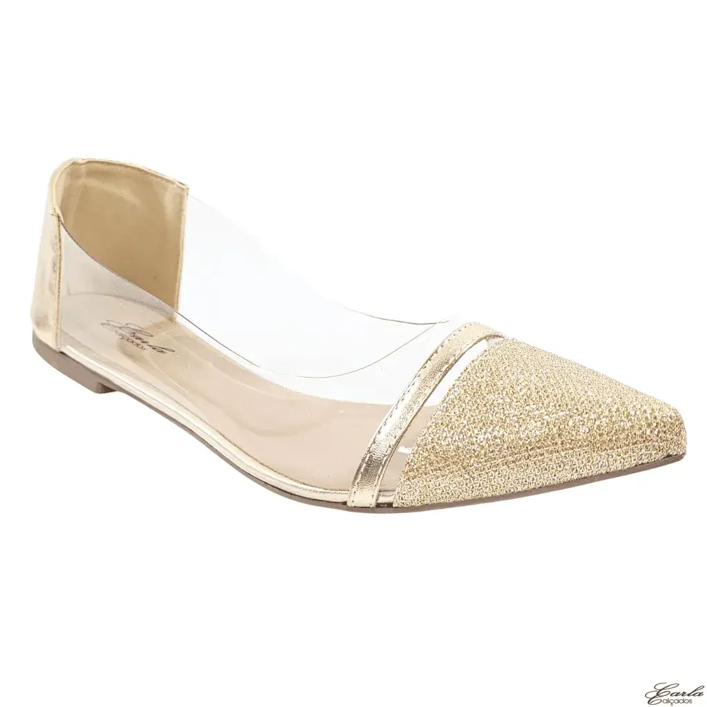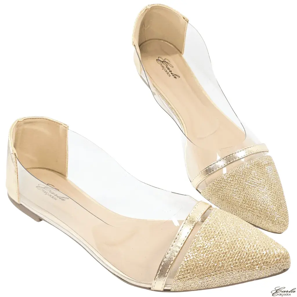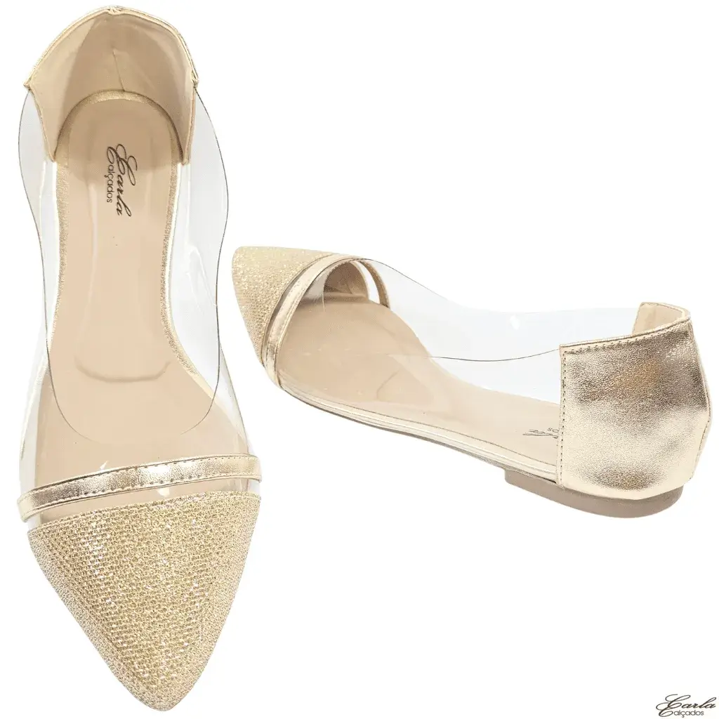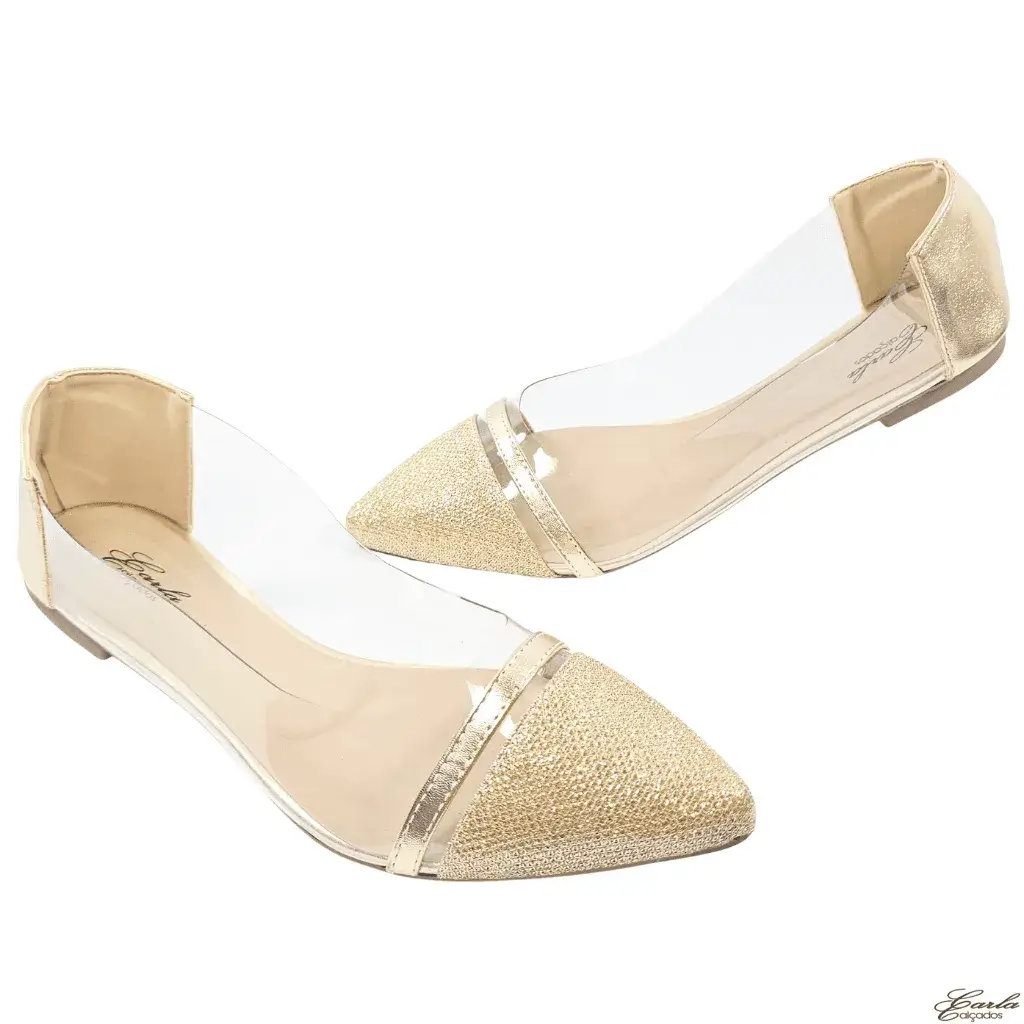 Esta sapatilha dourada é a definição de elegância versátil. Com acabamento em lurex de brilho delicado e laterais em vinil transparente, o modelo traz modernidade, leveza visual e um toque sofisticado que transforma qualquer look — do casual ao mais refinado.
