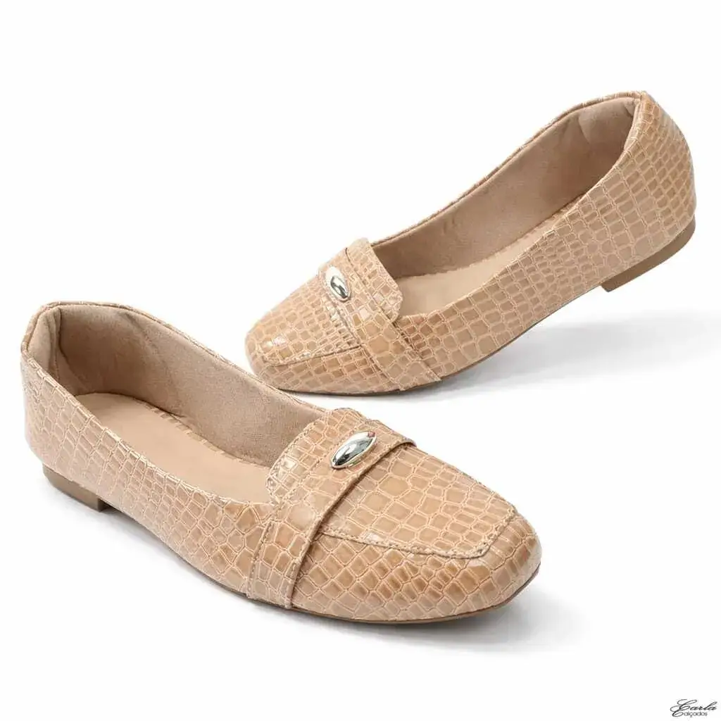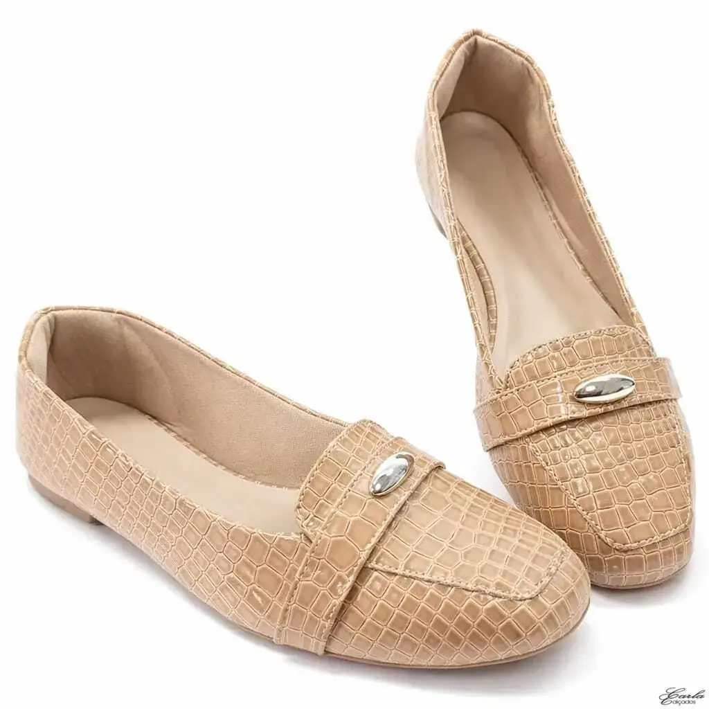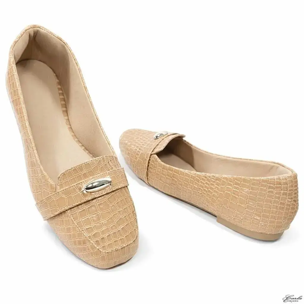 Elegância atemporal e conforto para acompanhar você em todos os momentos com nossa Sapatilha Feminina Tamanho Grande 41 42 43 44 Bege Croco