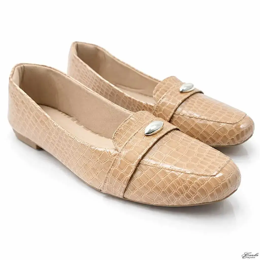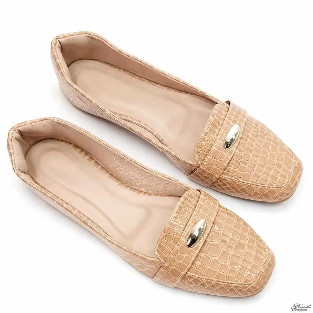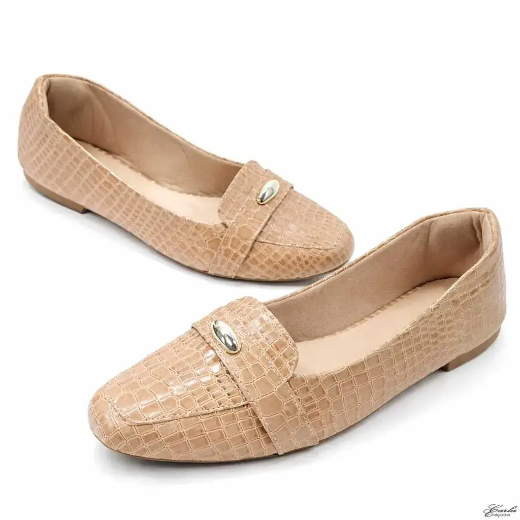 Elegância atemporal e conforto para acompanhar você em todos os momentos com nossa Sapatilha Feminina Tamanho Grande 41 42 43 44 Bege Croco