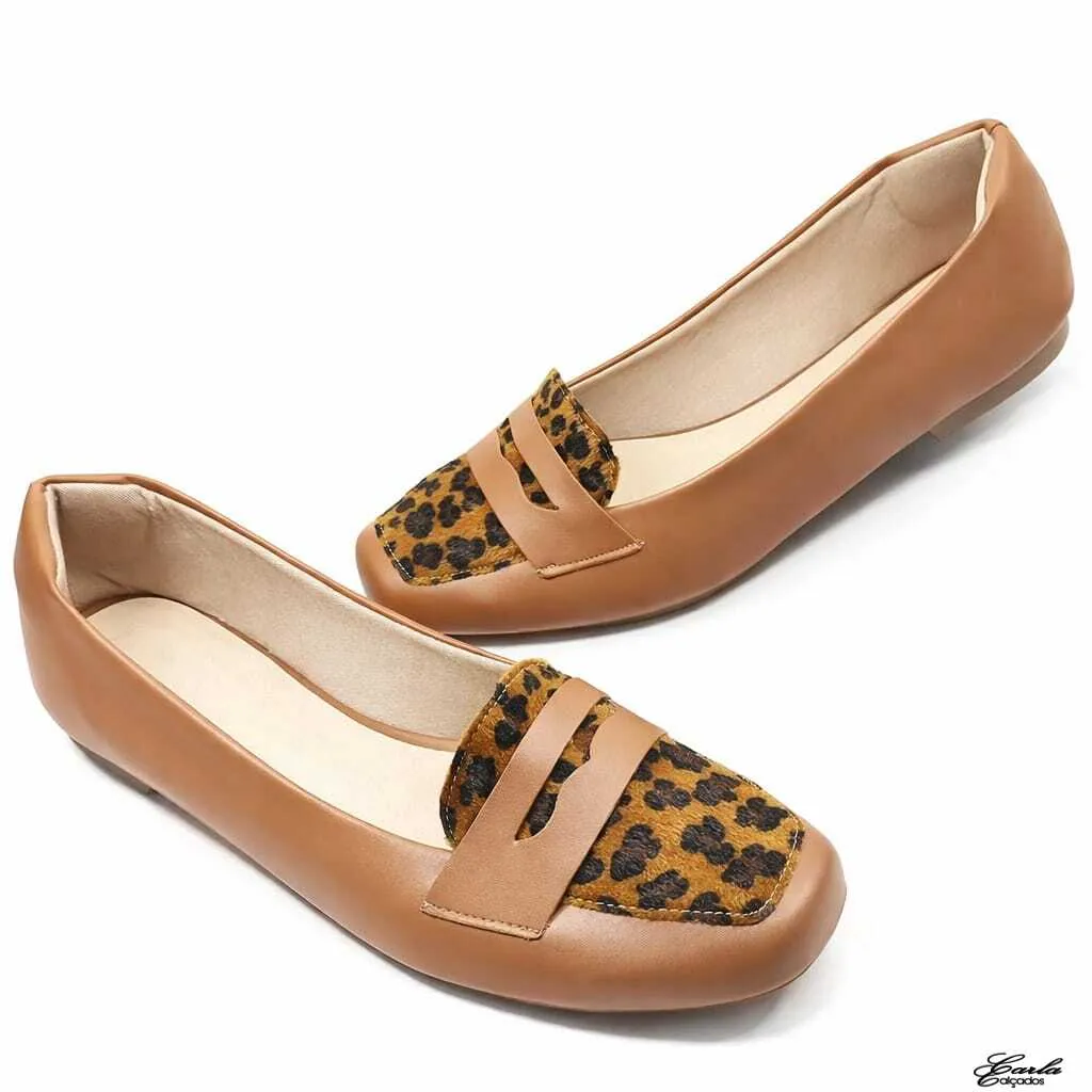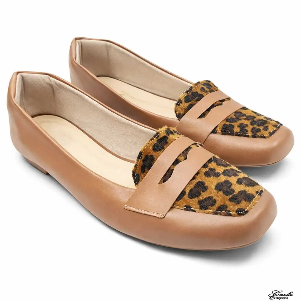 Sapatilha Mocassim Caramelo – Animal Print Tamanho Grande – Para Quem Ama Um Toque de Atitude
