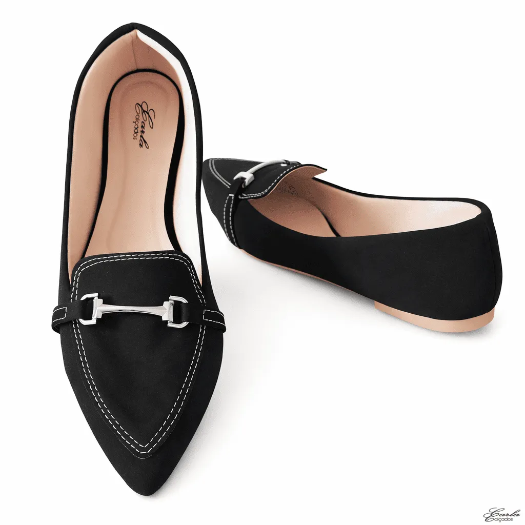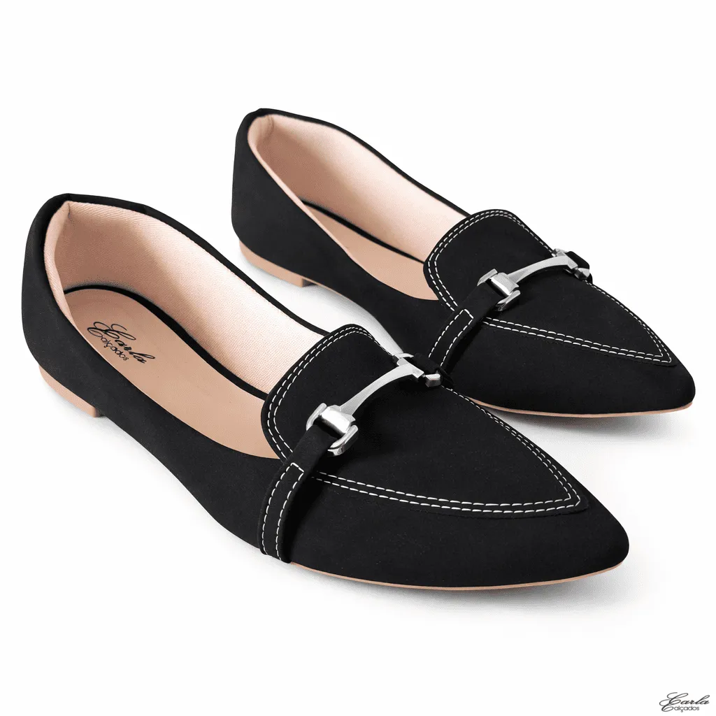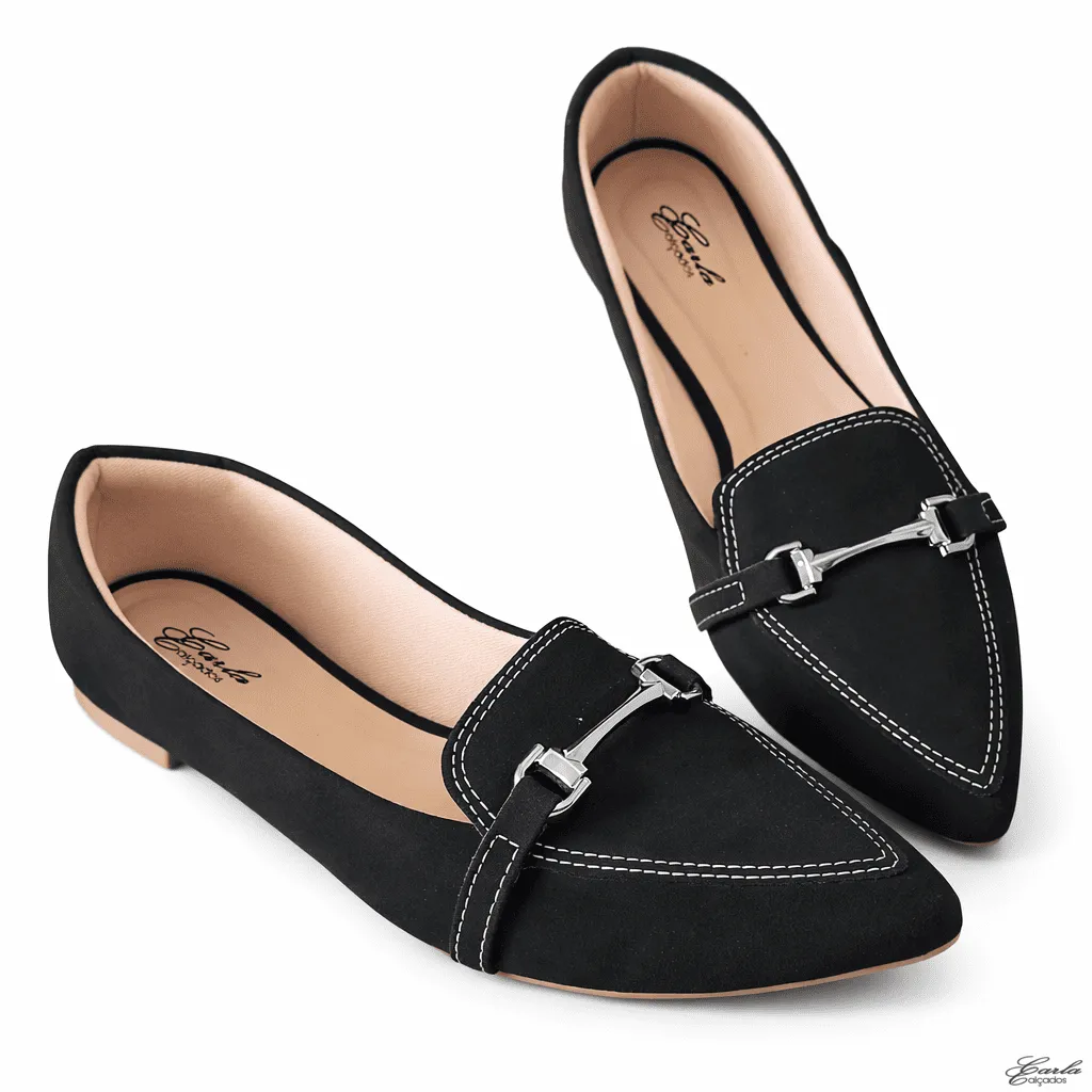 Sapatilha Preta Bico Fino Fivela Tamanho Especial