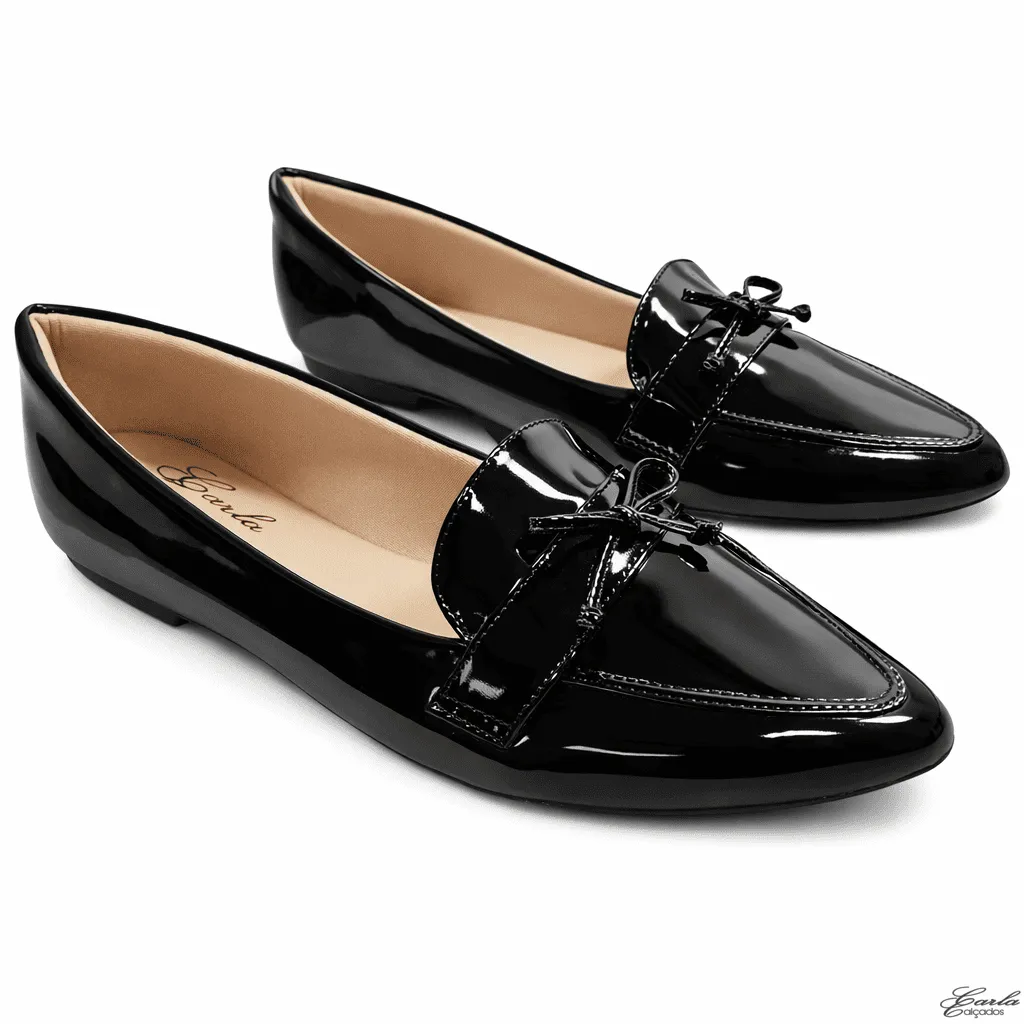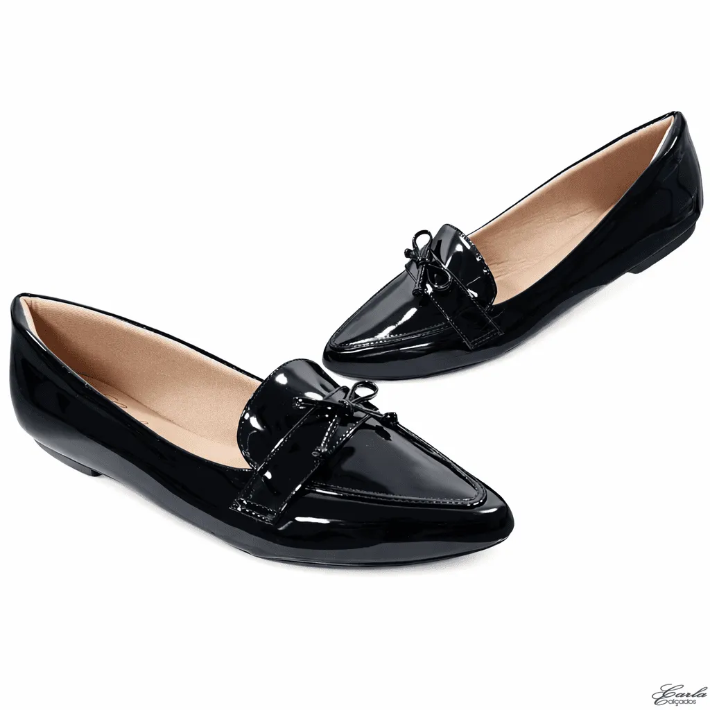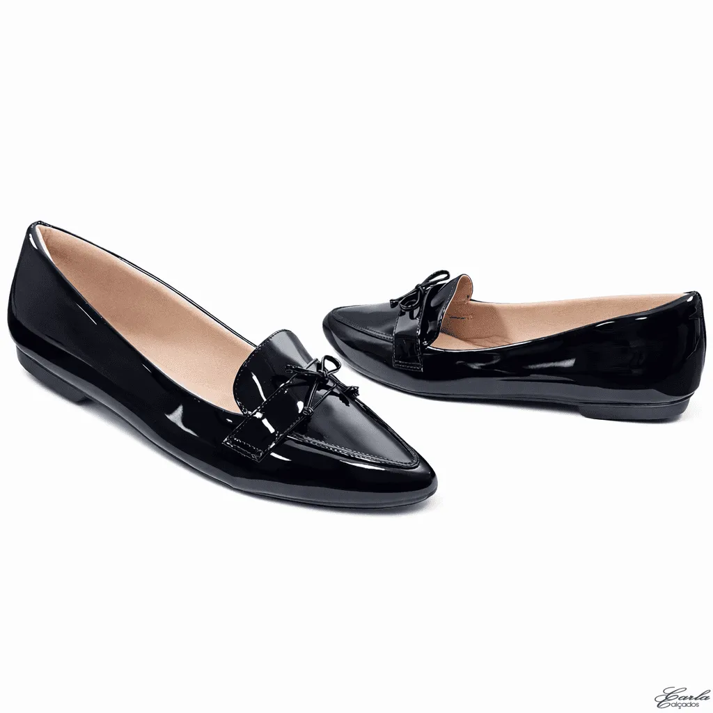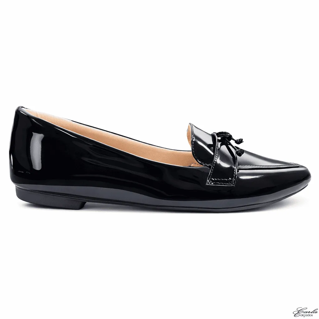Sapatilha Mocassim Verniz Preto Laço Numeração Especial 41 ao 44