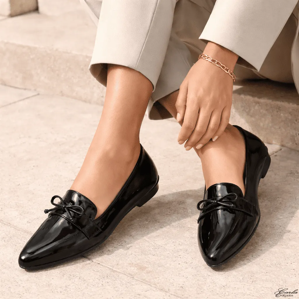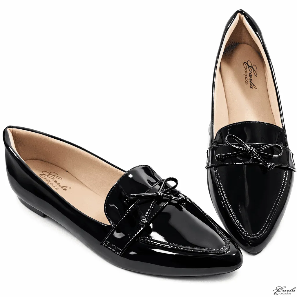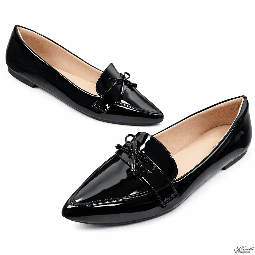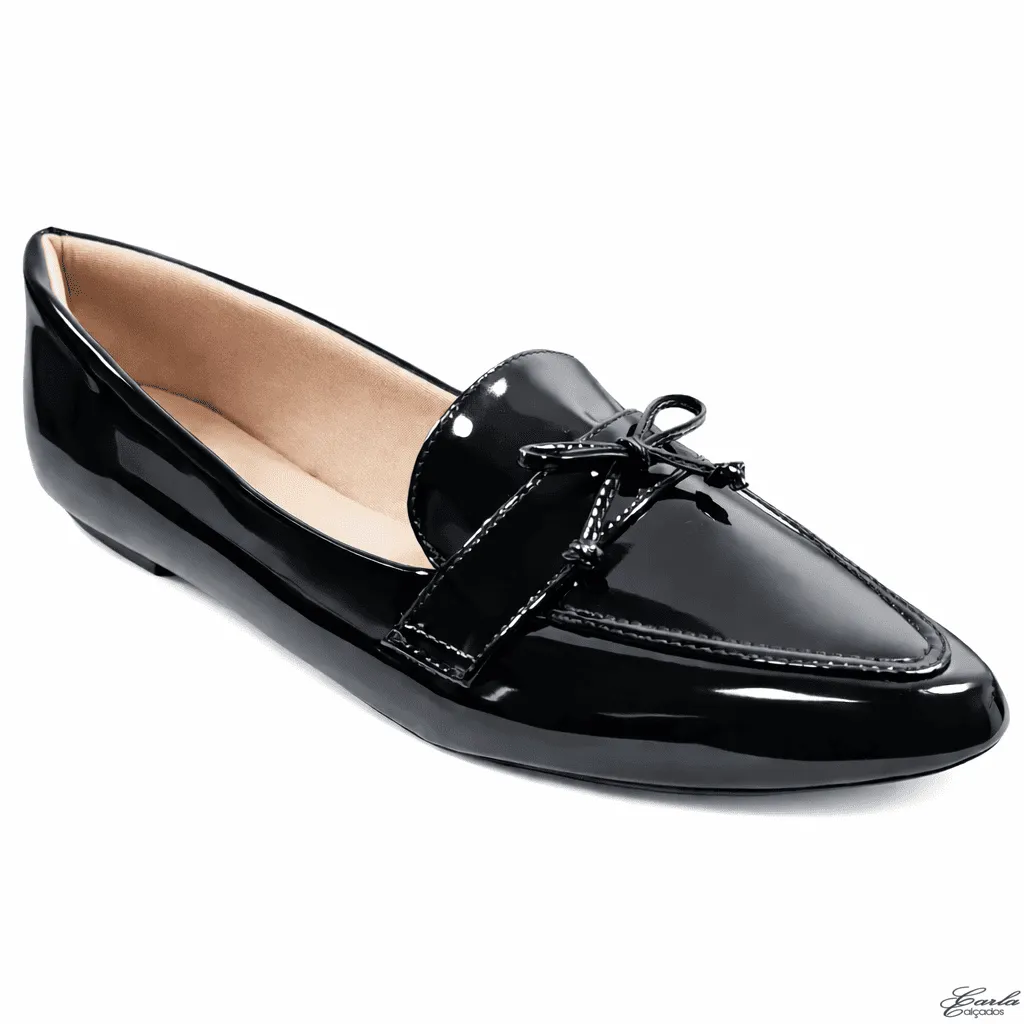 Sapatilha Mocassim Verniz Preto Laço Numeração Especial 41 ao 44