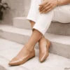 Sapatilha Luxo Nude Bico Fino Aberta – Detalhe Dourado
