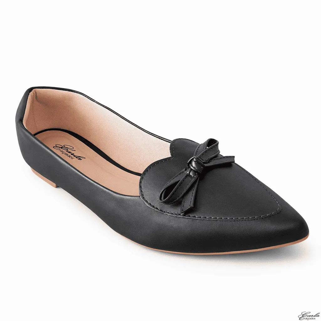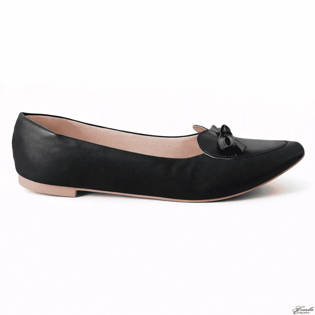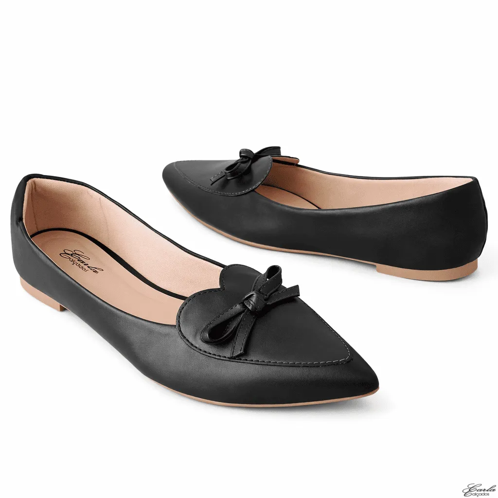 Delicada, elegante e cheia de charme, a Sapatilha Numeração Especial Coração Laço Bico Fino Preta 41 ao 44 traz um design feminino e diferenciado para o dia a dia.
