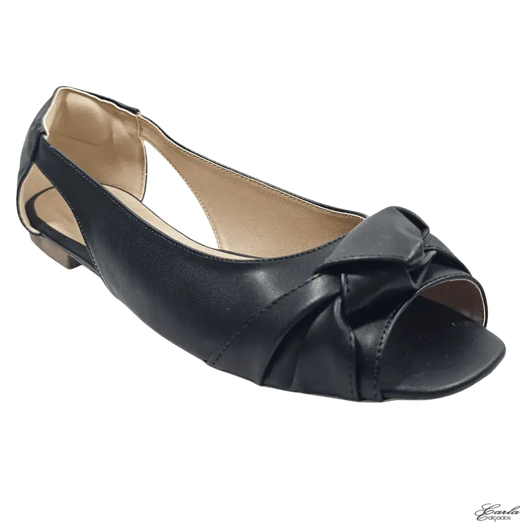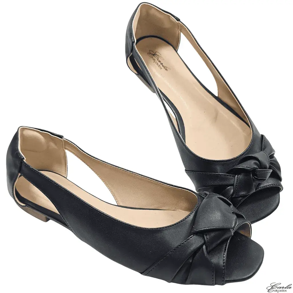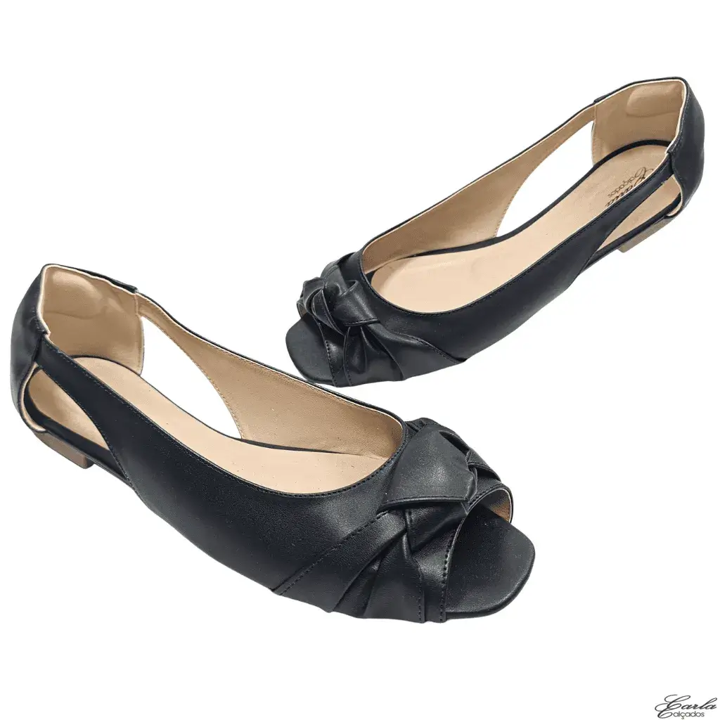A Sapatilha Peep Toe Preta Tamanho Especial combina modernidade e charme em um design atemporal. Confeccionada em sintético preto de alta qualidade, ela apresenta um delicado laço em nó que valoriza a feminilidade do modelo.