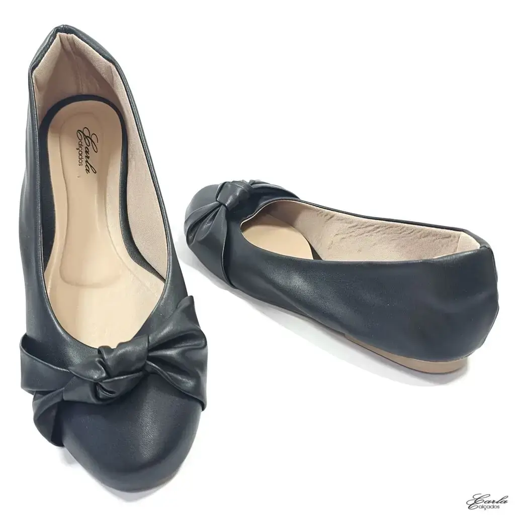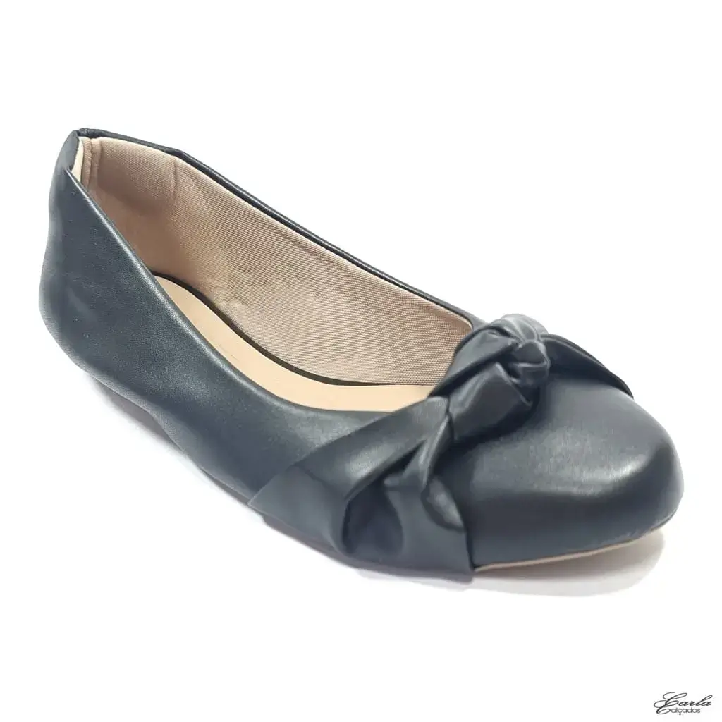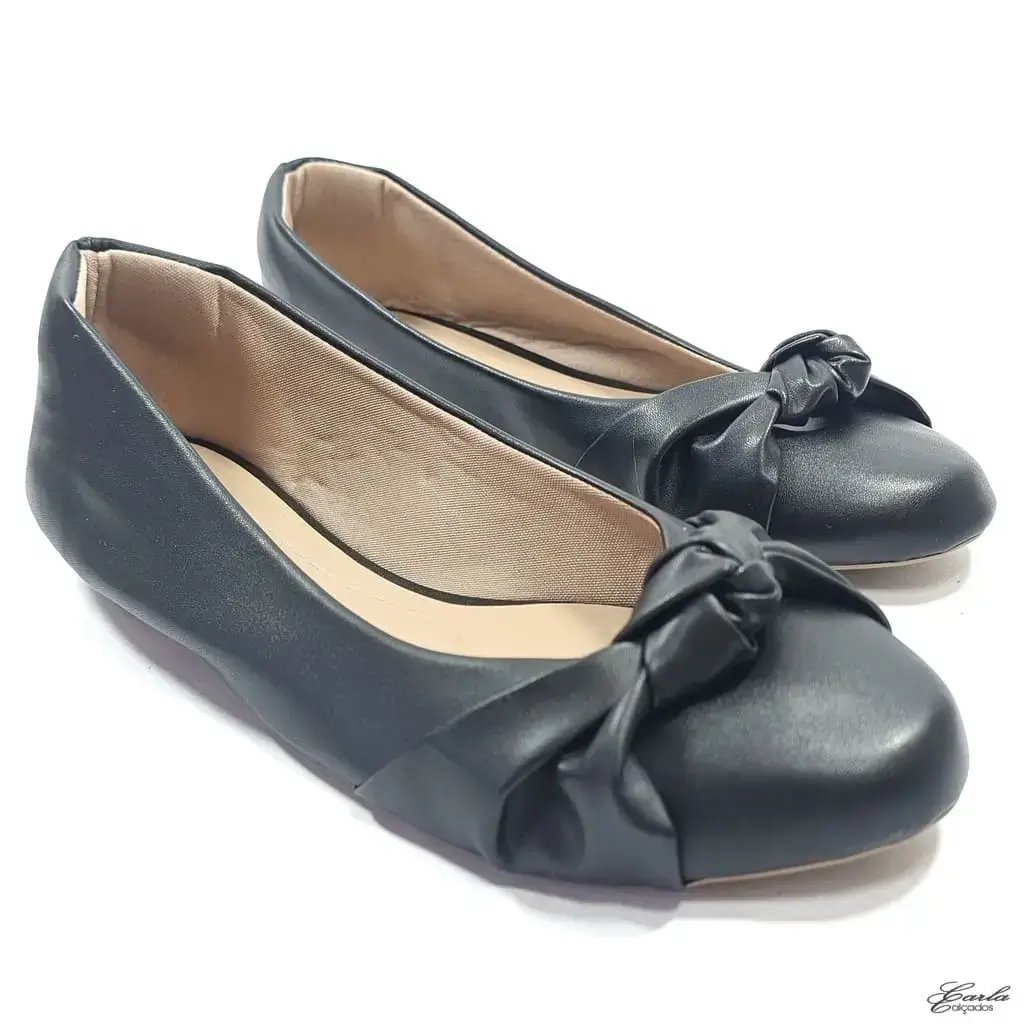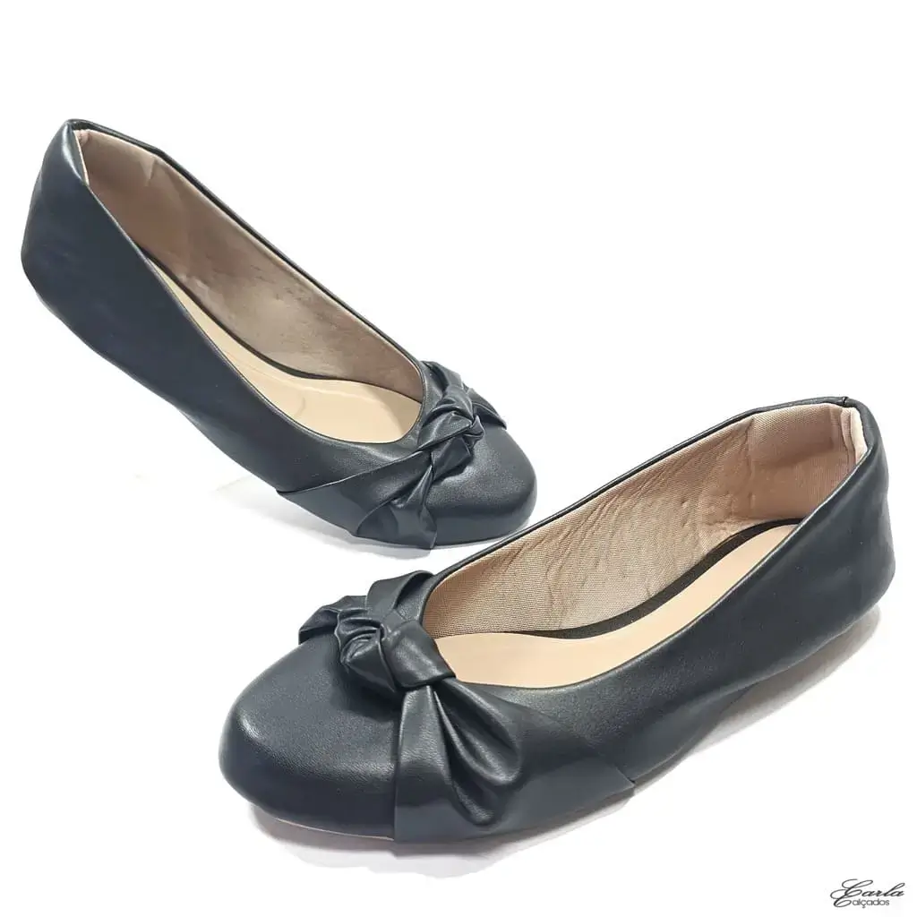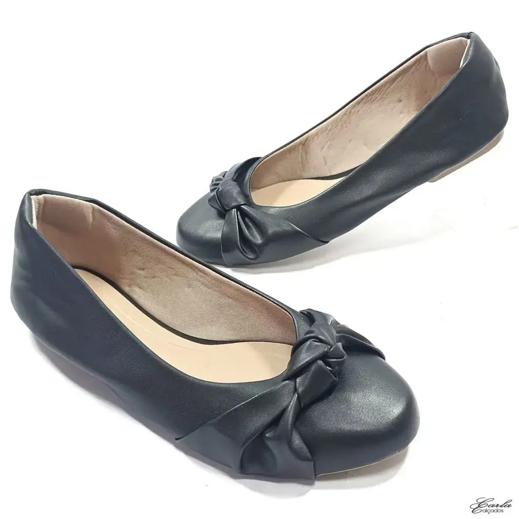 Clássica, feminina e feita na medida para quem calça do 41 ao 44, essa é a Sapatilha Preta Laço Nó Tamanho Especial Bico Redondo.