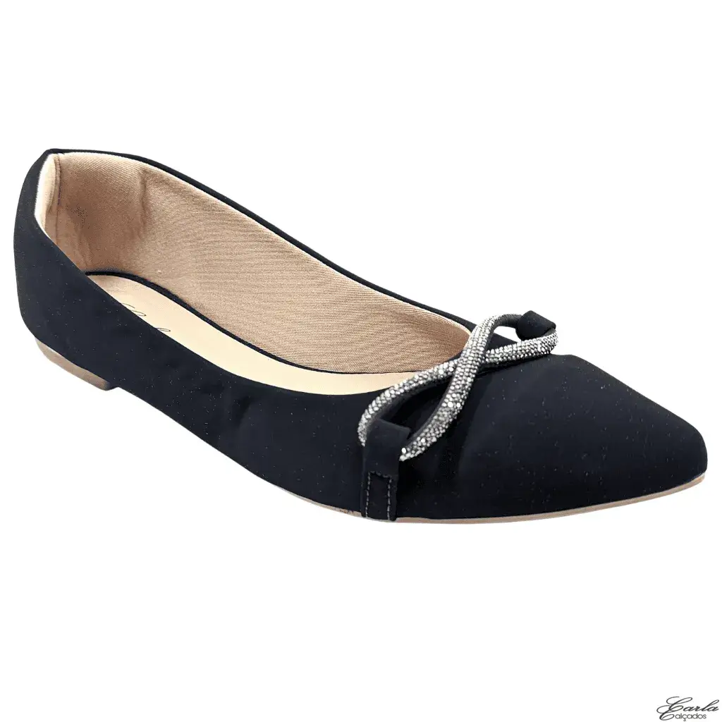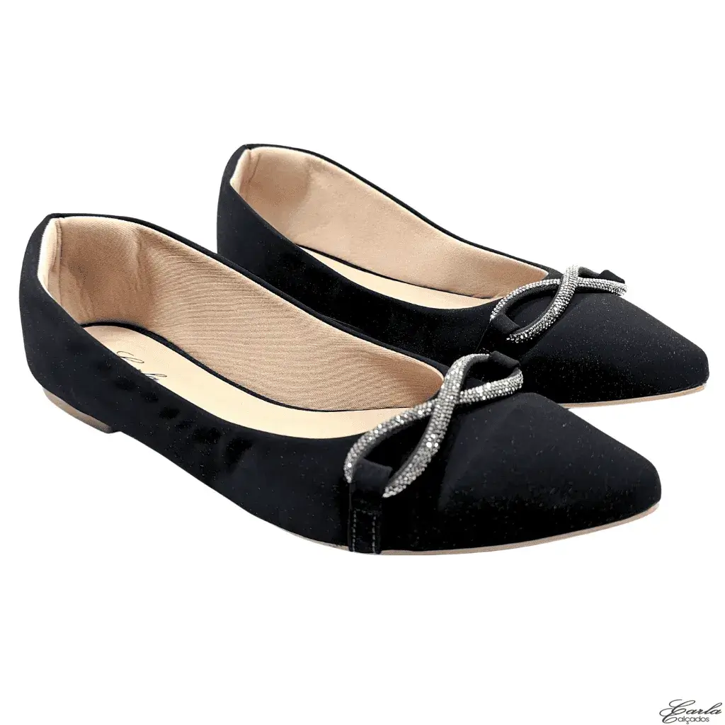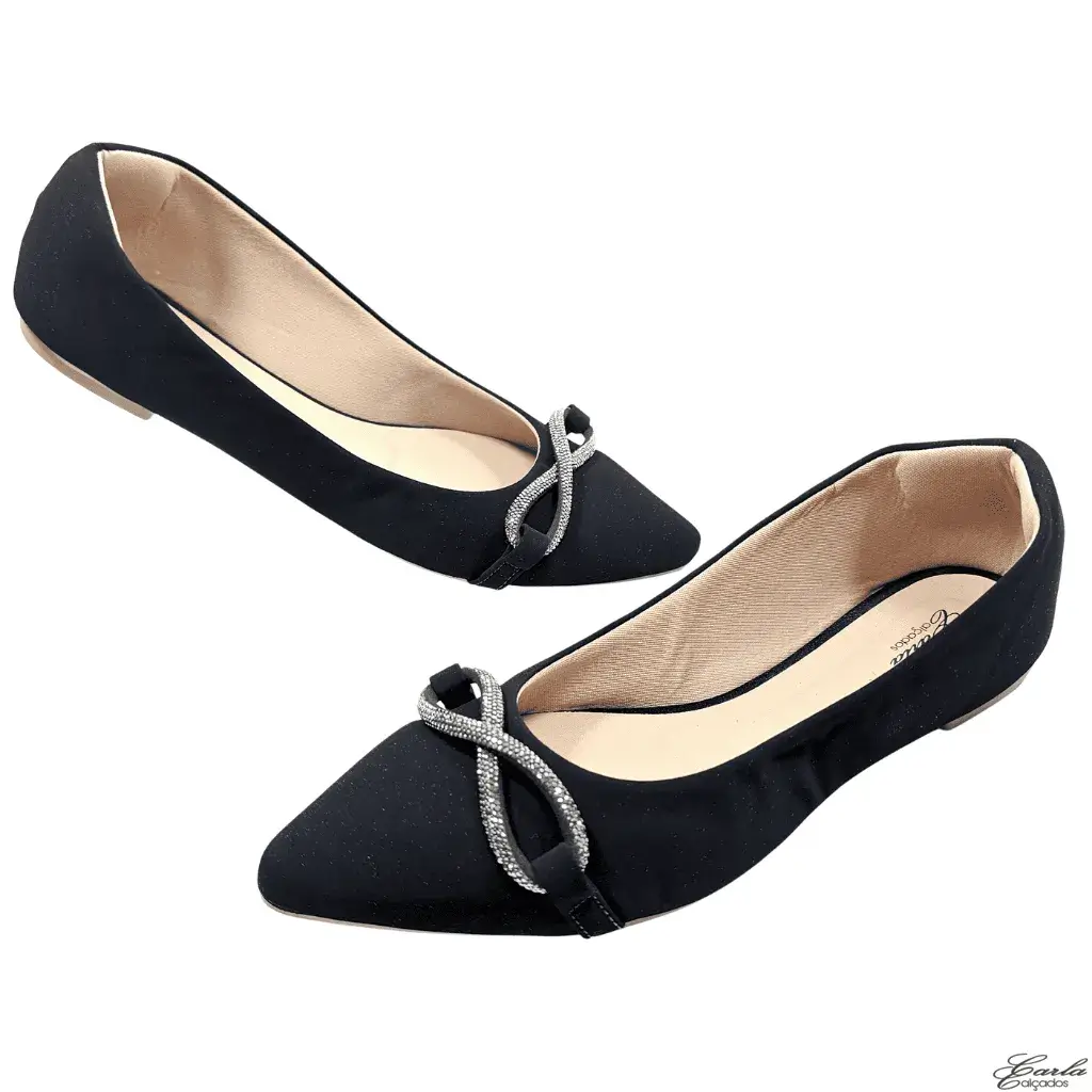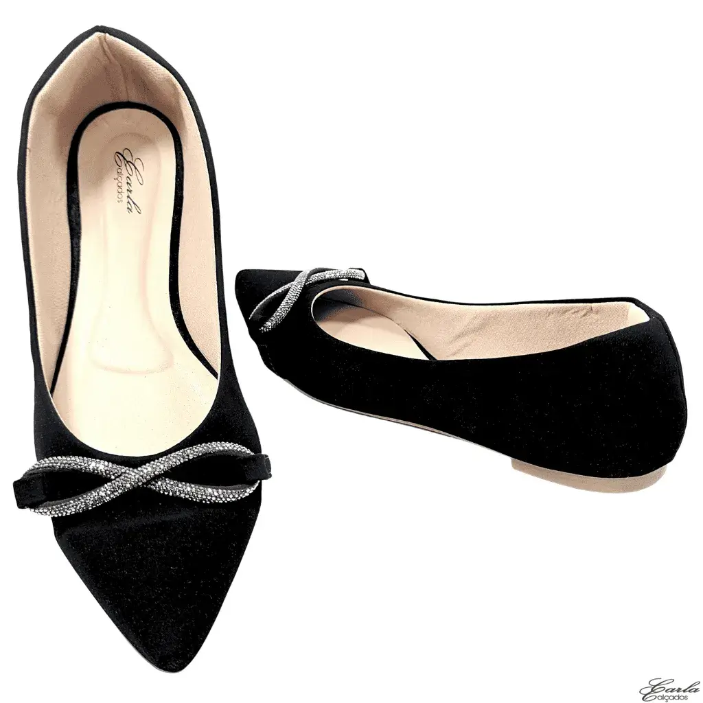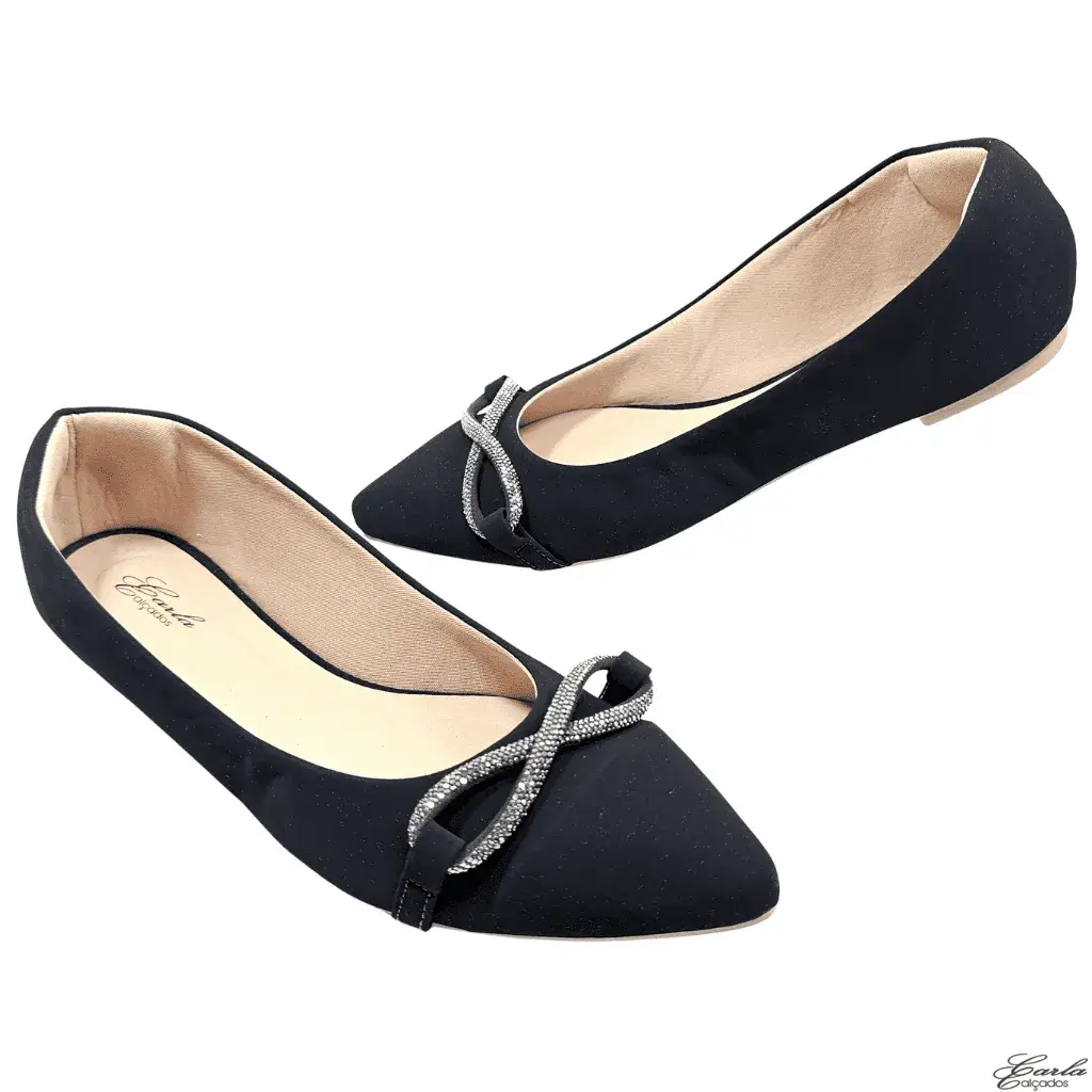A Sapatilha Preta Laço Strass Tamanho Especial traz o equilíbrio ideal entre charme e conforto. Produzida em nobuck preto macio, ela se destaca pelo delicado laço com aplicação de strass, que ilumina o visual e acrescenta um toque sofisticado.