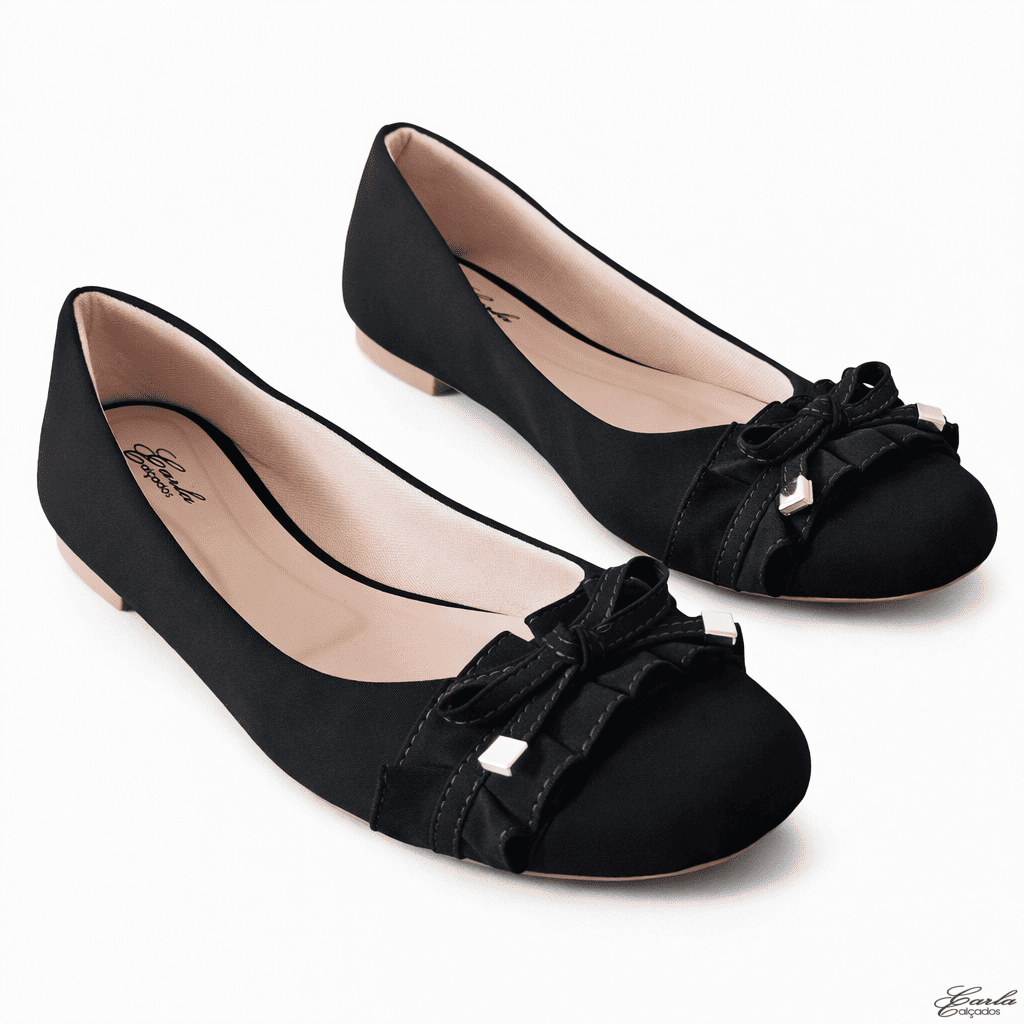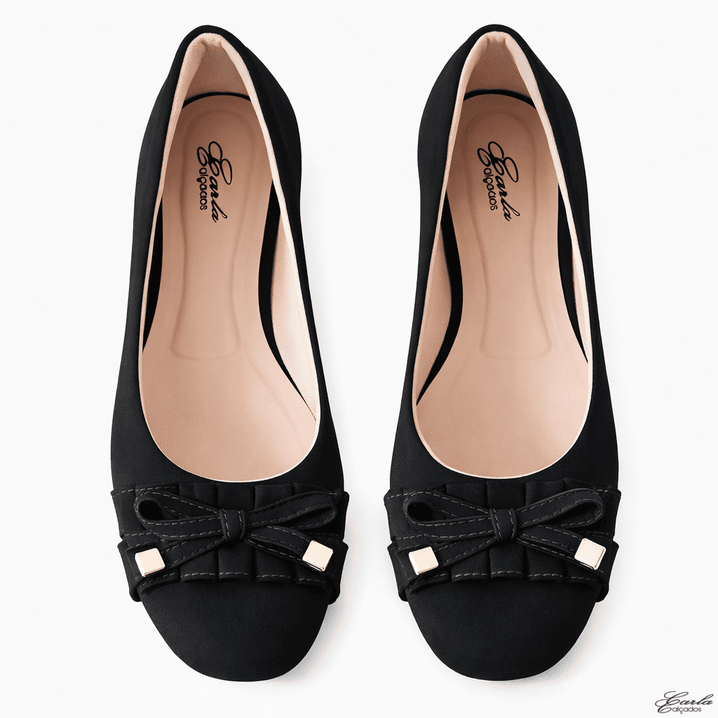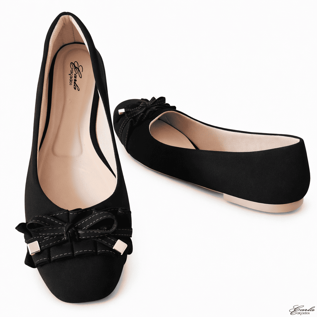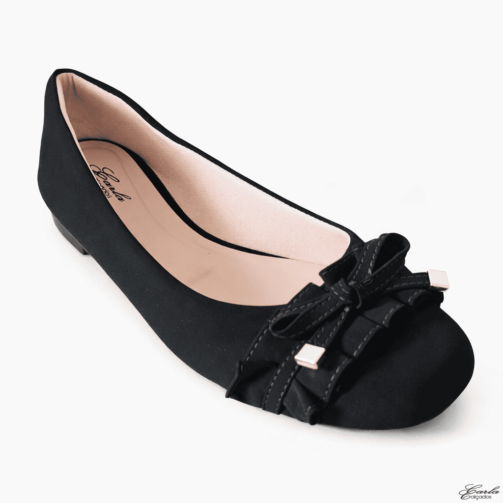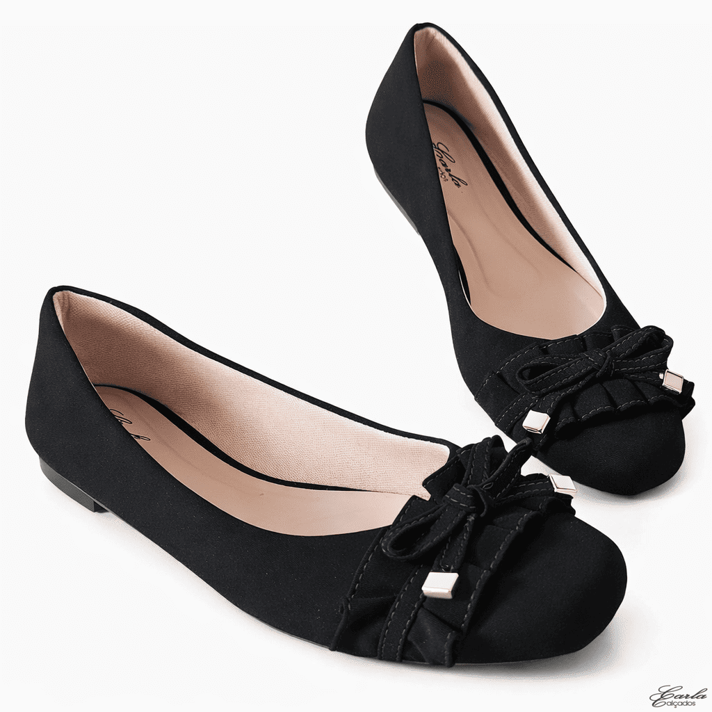 Delicada, charmosa e atemporal, assim é a Sapatilha Preta Numeração Especial Bico Quadrado Babadinho 41 ao 44, criada para mulheres que valorizam o equilíbrio entre estilo e conforto. Produzida em material nobuck preto, apresenta um design gracioso, com tira franzida formando um babadinho e um laço delicado sobre o cabedal, que acrescentam um toque romântico e elegante ao visual.