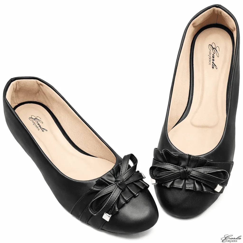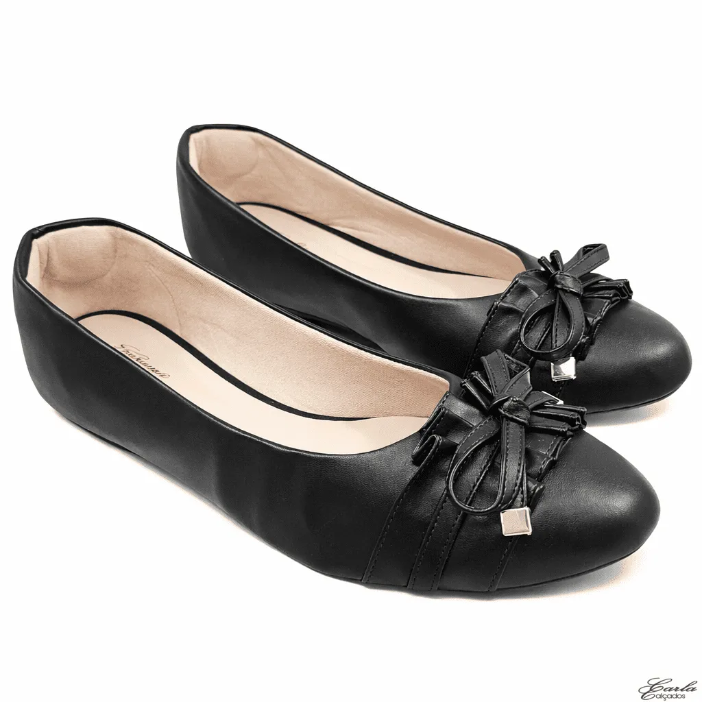 Referência: 1986 – Sapatilha Preta Numeração Especial Bico Redondo Babadinho 41 ao 44