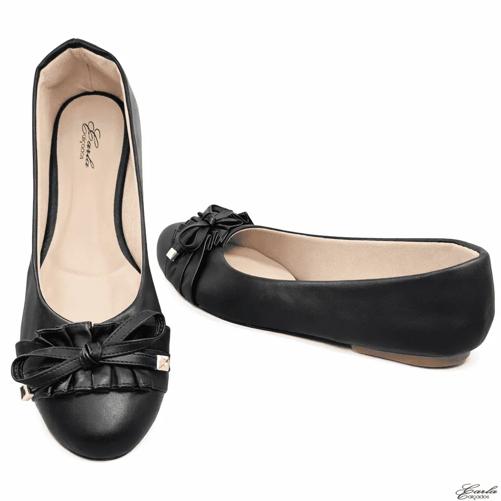 Delicada, charmosa e atemporal, assim é a Sapatilha Preta Numeração Especial Bico Redondo Babadinho 41 ao 44 da Carla Calçados, criada para mulheres que valorizam o equilíbrio entre estilo e conforto. Produzida em material sintético preto, apresenta um design gracioso, com tira franzida formando um babadinho e um laço delicado sobre o cabedal, que acrescentam um toque romântico e elegante ao visual.